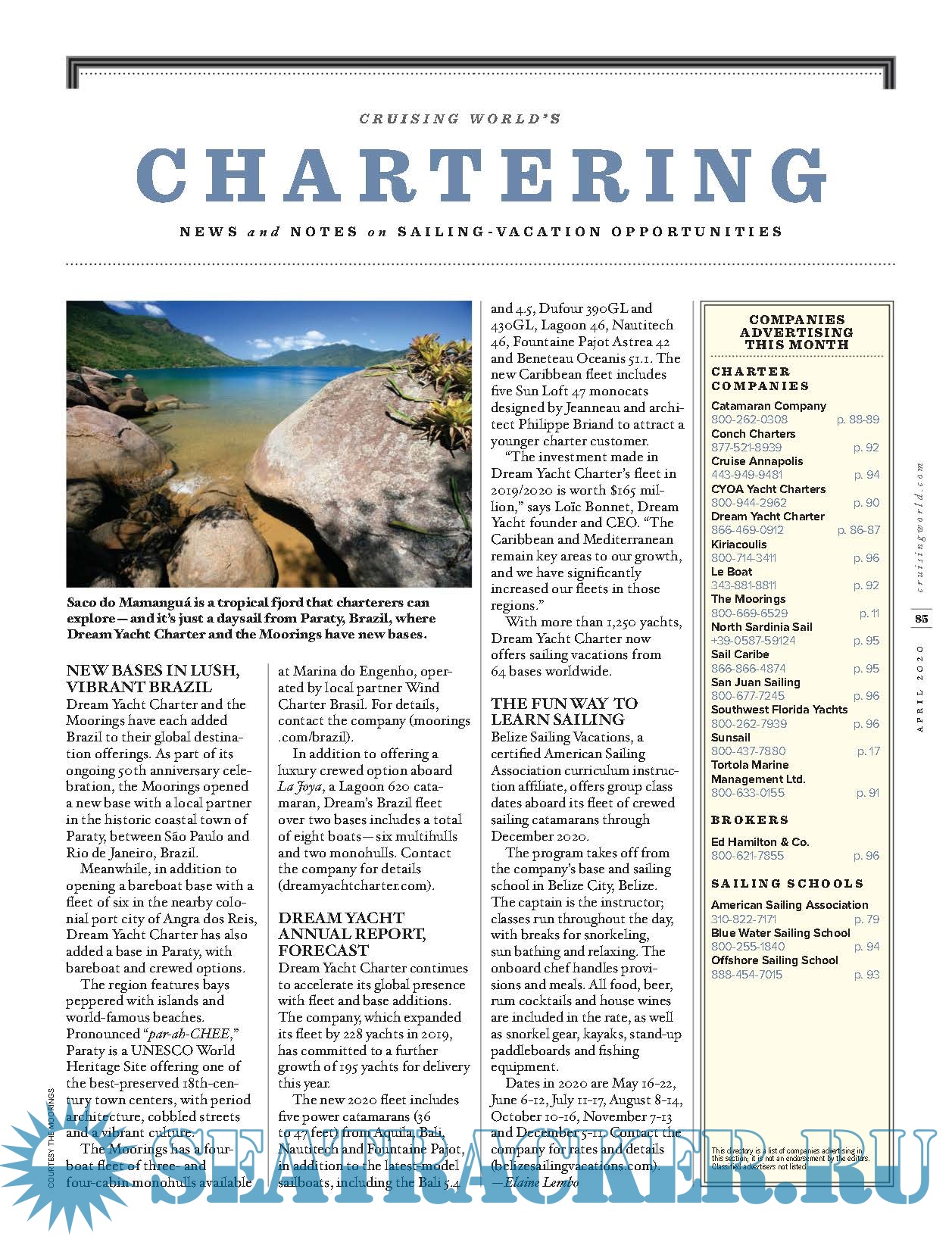 Description: Cruising World is your passport for exploring the world's coastlines and oceans while voyaging under sail. Its contributors inspire and entertain through stories, pictures and videos that underscore the beauty and adventure of sailing, while providing instruction on the disciplines of seamanship, navigation and boat handling.