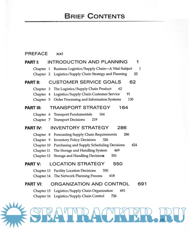Year: 2004 Language: english Author: Ronald H. Ballou Genre: Textbook Publisher: Pearson Education Ltd, Upper Saddle River, New Jersey. Edition: Fifth ISBN: 0-13123010-7 Format: PDF Quality: OCR without errors Pages count: 815 Description: This release, covers the planning, organizing, and controlling of activities like transportation, inventory maintenance, order processing, purchasing, warehousing, materials handling, packaging, customer service standards, and product scheduling. The book is specifically designed to help learners solve the actual problems that they will encounter in today's marketplace. In so doing, it provides the basic decision-making tools and concepts used for finding cost reduction and strategic opportunities. A six-part organization covers introduction and planning, customer service goals, transport strategy, inventory strategy, location strategy, and organization and control. It is a valuable material for logistics analysts, supply chain analysts, logistics managers, distribution analysts, logistics planners, directors of logistics, directors of distribution, supply chain consultants, logistics consultants, industrial engineers, operations analysts, operations managers, and all members of a supply chain. It comes with a CD that includes various software packages useful to solve a number of logistics problems and case studies discussed in each chapter. A CD icon will appear with the software package designation where the problem analysis is assisted by one of these software programmes. If no icon appears, hand calculation is assumed. This release is the correct one, while a previous attempt to upload the material with the same ISBN but with the coverpage in Spanish, was unsuccessful, and you should not pay any attention to it!!!!!