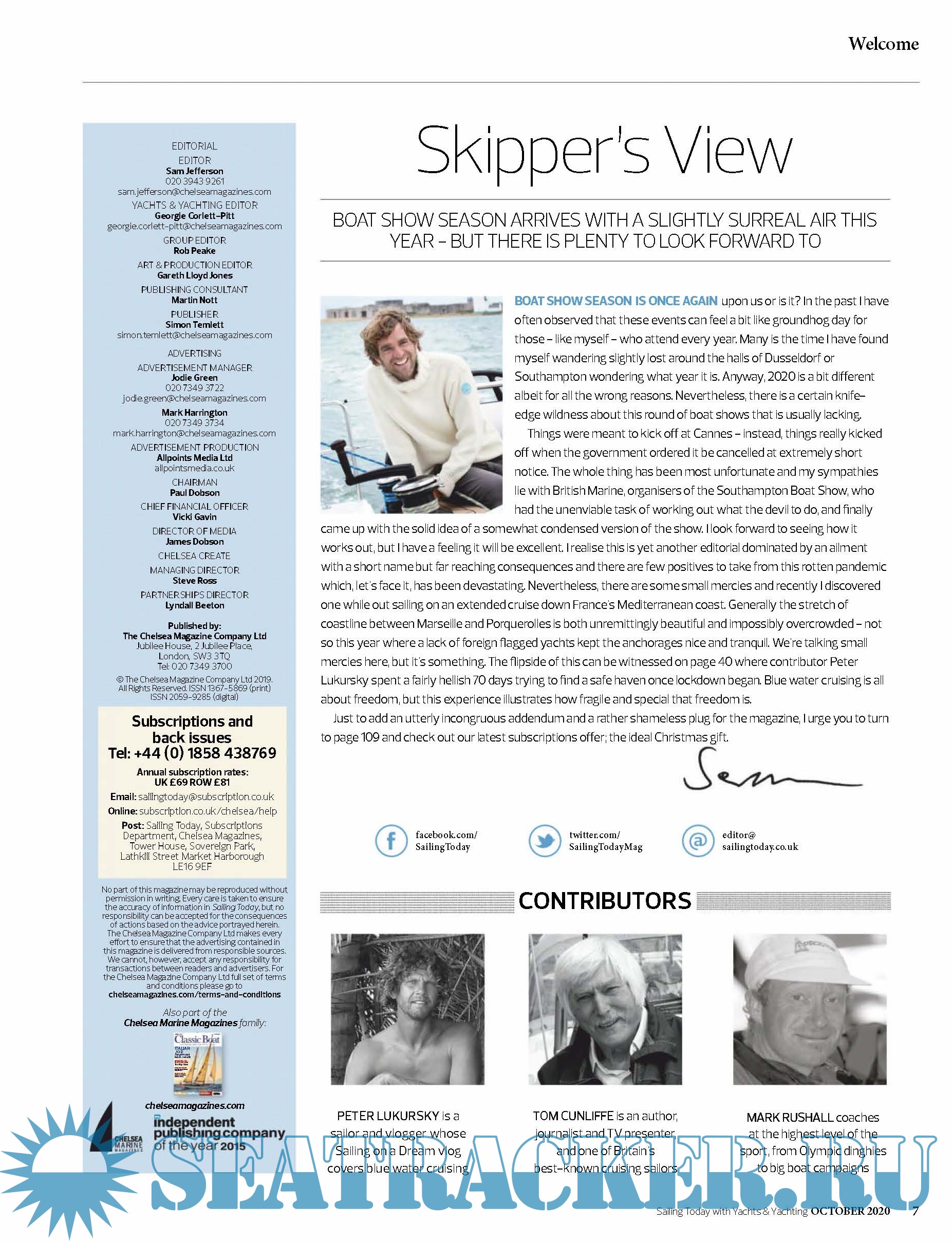 Year: 2020 Language: english Author: Editor) Sam Jefferson Genre: Periodical (magazine) Publisher: The Chelsea Magazine Company ltd. Edition: October 2020 Format: PDF Quality: Photo of pages Pages count: 132 Description: Sailing Today is the magazine for hands-on cruising sailors whose love of sailing takes them around the British Isles, across the Channel and further, to the blue waters of the wider world.Offering a wealth of practical advice and a dynamic mix of in-depth boat, gear and equipment news, Sailing Today is written cover to cover by sailors, for sailors. Since its launch in 1997, the magazine has sealed its reputation for essential sailing information and advice.Since we launched in 1997 we have sealed our reputation as THE magazine for essential sailing information and expert advice.ST is written by sailors for sailors, from our new and used boat tests, to our step by step practical articles and in-depth gear tests, or our inspiring cruising tales from home and abroad.Whatever you want to know – from which GPS to buy, or the best way to install central heating – Sailing Today provides the best answers.With our fantastic on-board gear tests, the latest boat tests and regular advice about seamanship and navigation, we deliver practical back-up for those who enjoy using their boats and want to get the best from them.