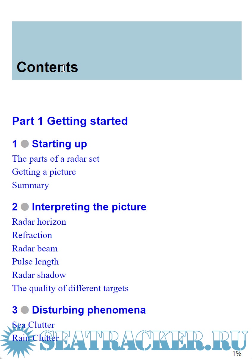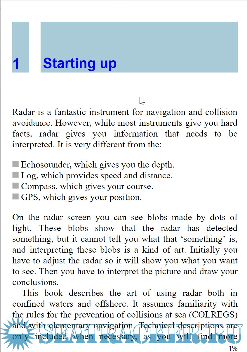 Year: 2013 Language: english Author: Borje Wallin Genre: Handbook Publisher: Adlard Coles Edition: First ISBN: B00EUBPZIW Format: EPUB Quality: eBook Pages count: 128 Description: Radar is notoriously tricky to operate and 'read' correctly for collision avoidance either with the land or with other vessels. But used by an informed operator it is an immensely valuable navigation tool - especially in poor visibility. GPS will tell you where you are, but it won't tell you if there's another boat in that spot! Rather than taking a theoretical, academic approach, this book is highly practical and hands on - complementing the radar owner's manual and explaining what the operator really needs to know when faced with actual situations at sea. Packed with illustrative photos, charts and radar screen shots, this book gives guidance from a real life, on-the-water perspective, and will enable readers to solve problems on the spot.