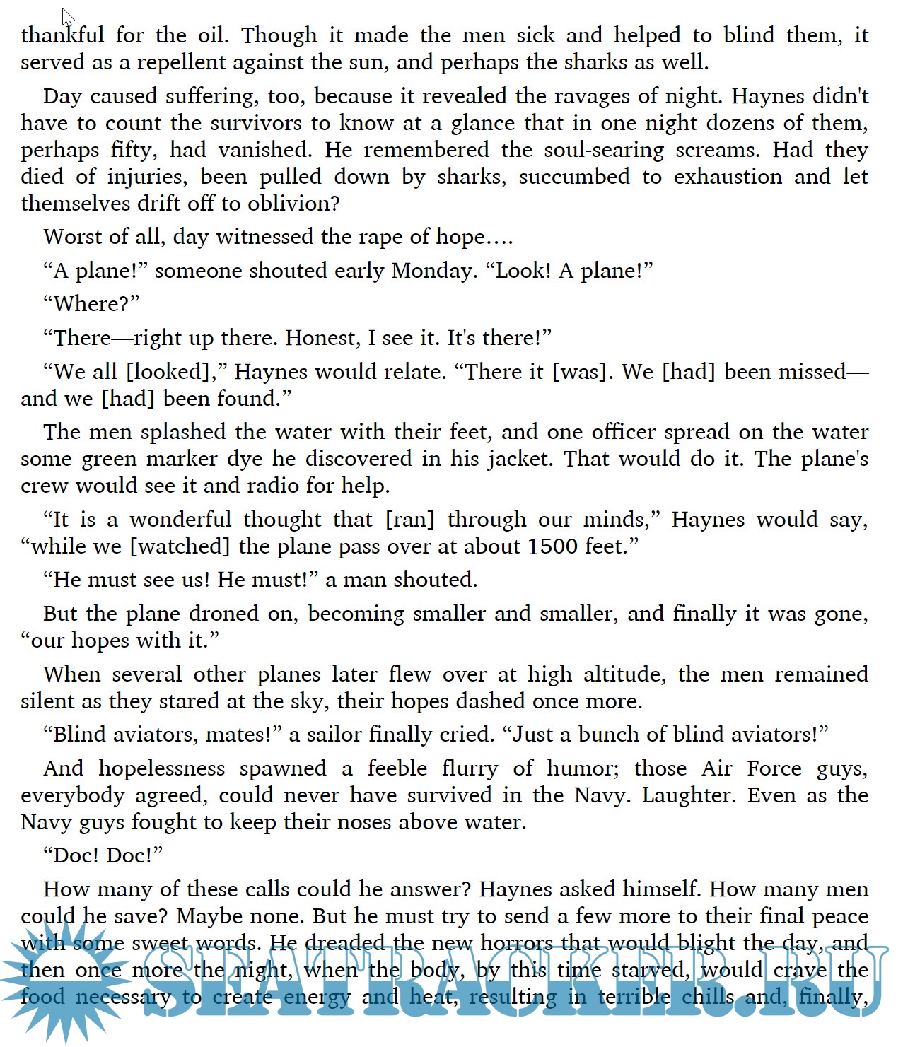 Description: Shortly after midnight on July 30, 1945, the Navy cruiser USS Indianapolis was torpedoed by a Japanese submarine in the Philippine Sea. The ship had just left the island of Tinian, delivering components of the atomic bomb destined for Hiroshima. As the torpedoes hit, the Indianapolis erupted into a fiery coffin, sinking in less than fifteen minutes and leaving nine hundred crewmen fighting for life in shark-infested waters. They expected a swift, routine rescue, unaware that the Navy high command didn’t even realize that the Indianapolis was missing. Help would not arrive for another five days.