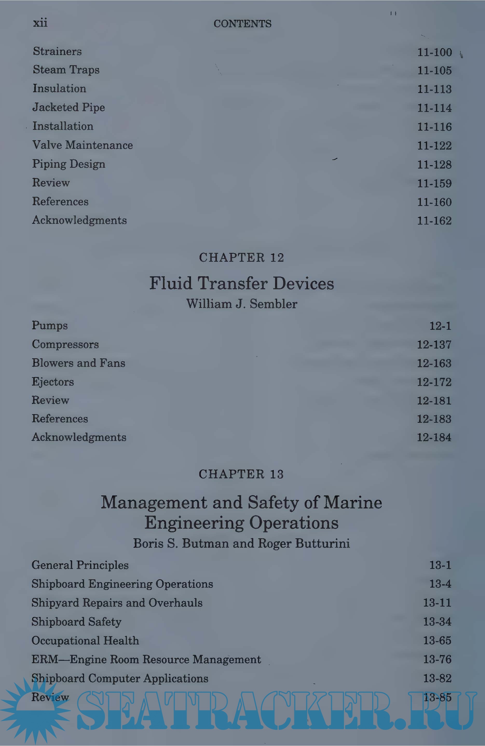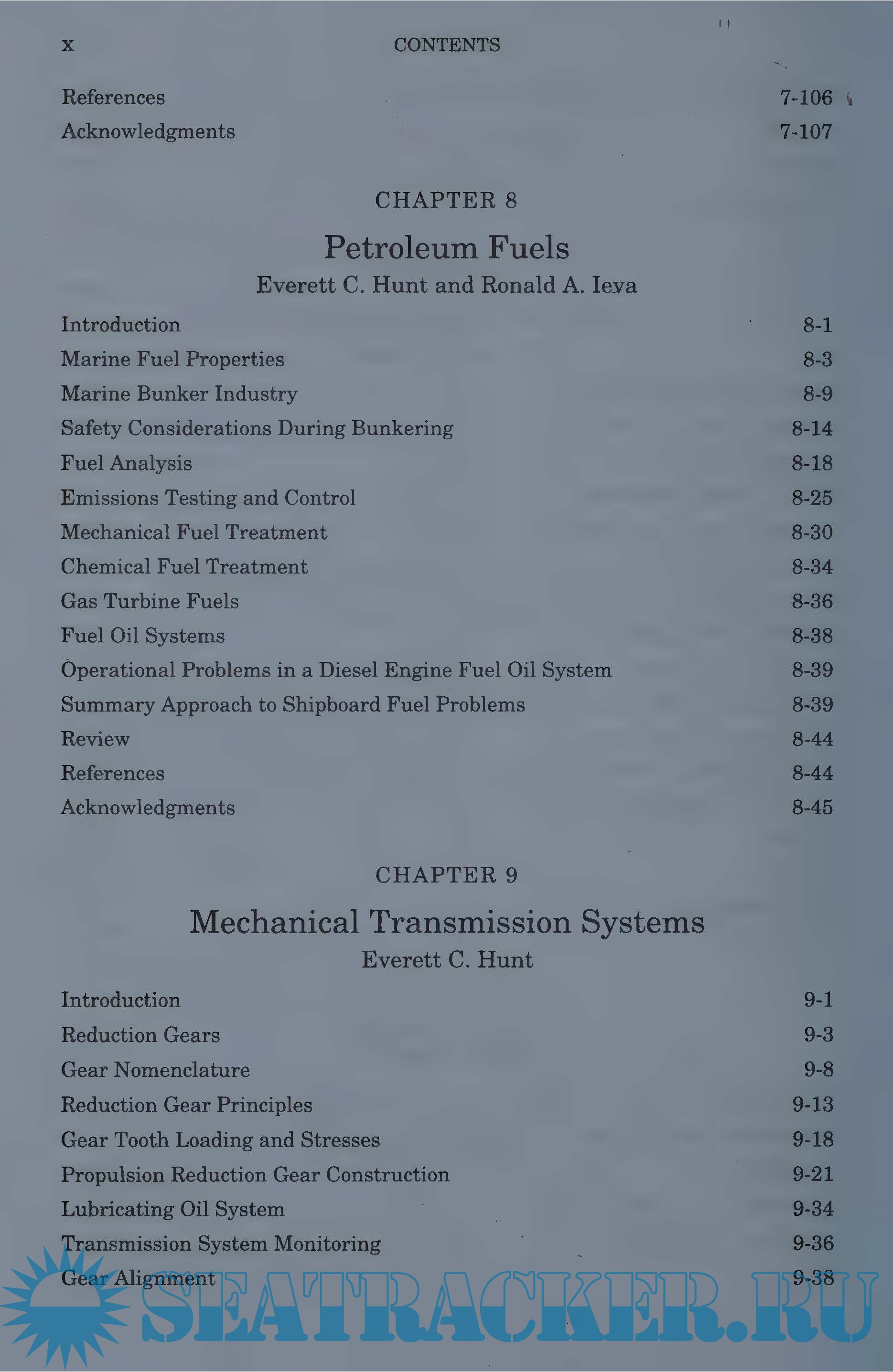 Year: 2010 Language: english Author: Everett C. Hunt Genre: Manual Publisher: Cornell Maritime Press Edition: Reprint 2010 ISBN: 9780870334962 Format: PDF Quality: Photo of pages Pages count: 1280 Description: This book is designed to serve as a textbook for students and a reference for today’s engineering officers, port engineers, superintendent engineers, and other maritime professionals. Steam turbine propulsion systems are included, but the coverage has been reduced in recognition of the popularity of main propulsion diesel engines, covered in volume 2, and the anticipated increasing applications of aeroderivative gas turbines. Reciprocating steam engines have been eliminated. Pumps, pumping systems, and heat exchangers are given extensive coverage. Computer applications for machinery and system management are presented, including an entire chapter on maintenance management. Relevant material on international and national laws, classification society requirements, and standards, such as ISO 9000 series and the ISM code, are included in the text. The characteristics of fuels are presented along with a discussion of fuel testing and analysis, and a section on bunkering. A chapter on safety and management discusses shipboard engineering operations, shipyard repair planning and economics, and safety management. Each chapter includes review questions and references for additional study. : Previous Release: