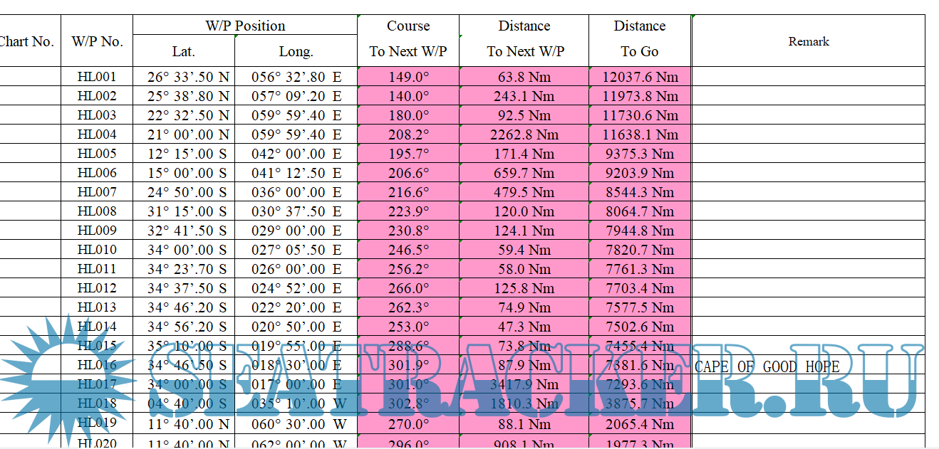Description: VLCC Recommended Route Way Point
