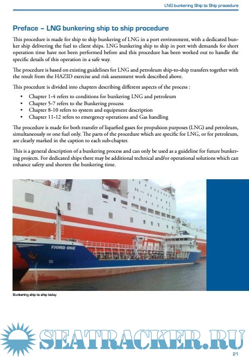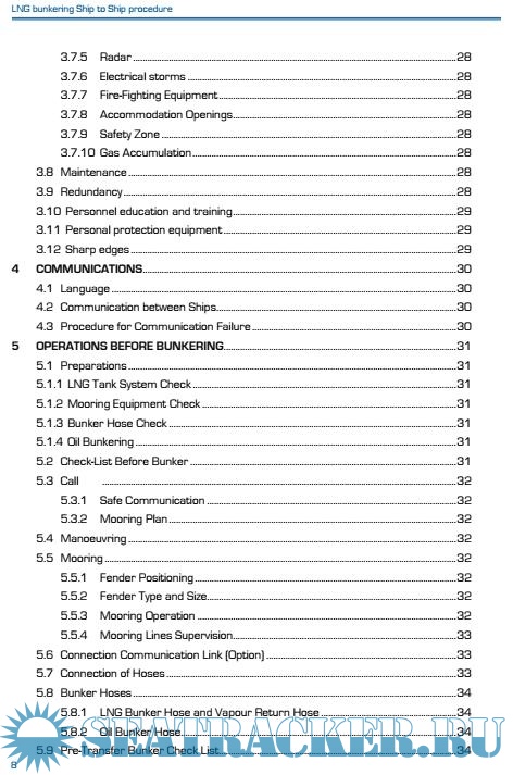 Year: Unkn Language: english Author: Swedish Marine Technology Forum Genre: Technical book Publisher: Swedish Marine Technology Forum Edition: LNG02 Format: PDF Quality: eBook Pages count: 62 Description: Summary This document is a procedural description of how LNG (liquid natural gas) bunkering between two ships should be done. The document is the result of the joint venture project “LNG bunkering Ship to Ship”, a technology development project carried out by Swedish Marine Technology Forum, FKAB Marine Design, Linde Cryo AB, Det Norske Veritas AS (DNV), LNG GOT and White Smoke AB. LNG bunkering ship to ship in port with demands for short operation time have not been performed be- fore and this procedure has been worked out to handle the specific details of this operation in a safe way. The procedure is made for ship to ship bunkering of LNG in a port environment, with a dedicated bunker ship rapidly delivering the fuel to client ships while cargo and passenger handling is still in progress. The project has developed a LNG bunkering concept that encompasses both the operational bunkering process and technical solutions needed for ship to ship bunkering of LNG. The conclusion of this study is that LNG bunkering ship to ship is indeed a suitable solution to provide environmentally friendly bunker fuel to larger ships. The concept is accepted and approved in principle by DNV. Additional info: Unknown year, maybe 2020.