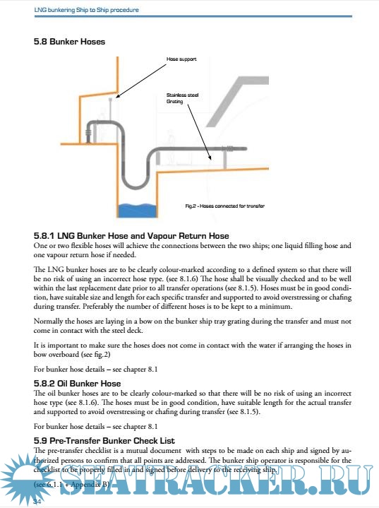 This document is a procedural description of how LNG (liquid natural gas) bunkering between two ships
