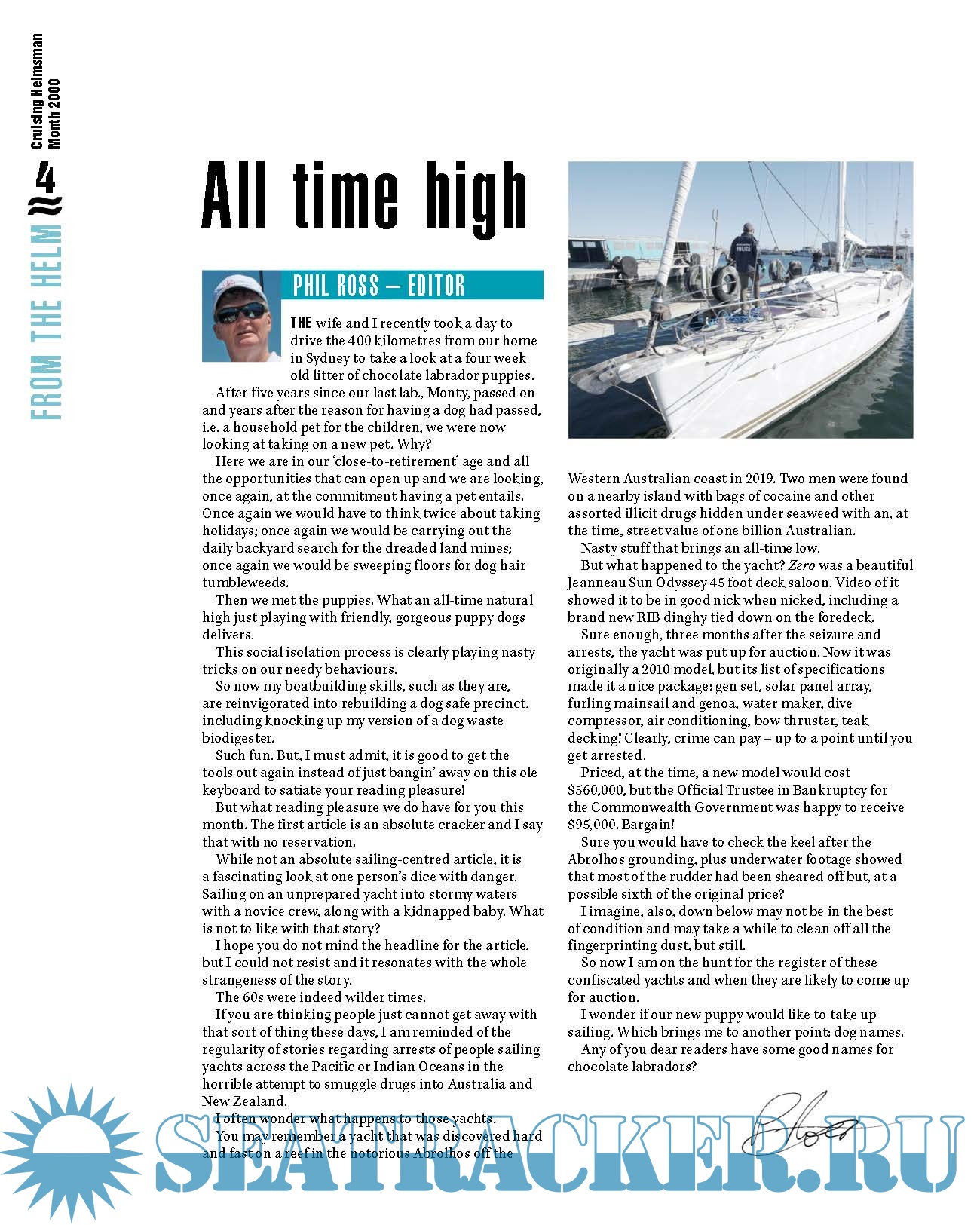 Year: 2020 Language: english Author: Phil Ross - Editor Genre: Periodical (magazine) Publisher: Tracy Yaffa Edition: July 2020 Format: PDF Quality: Photo of pages Pages count: 68 Description: Cruising Helmsman is Australia’s top-selling and circulating audited sailing magazine. It has been the leader in information for recreational yacht owners since 1981. Closed January 2021
