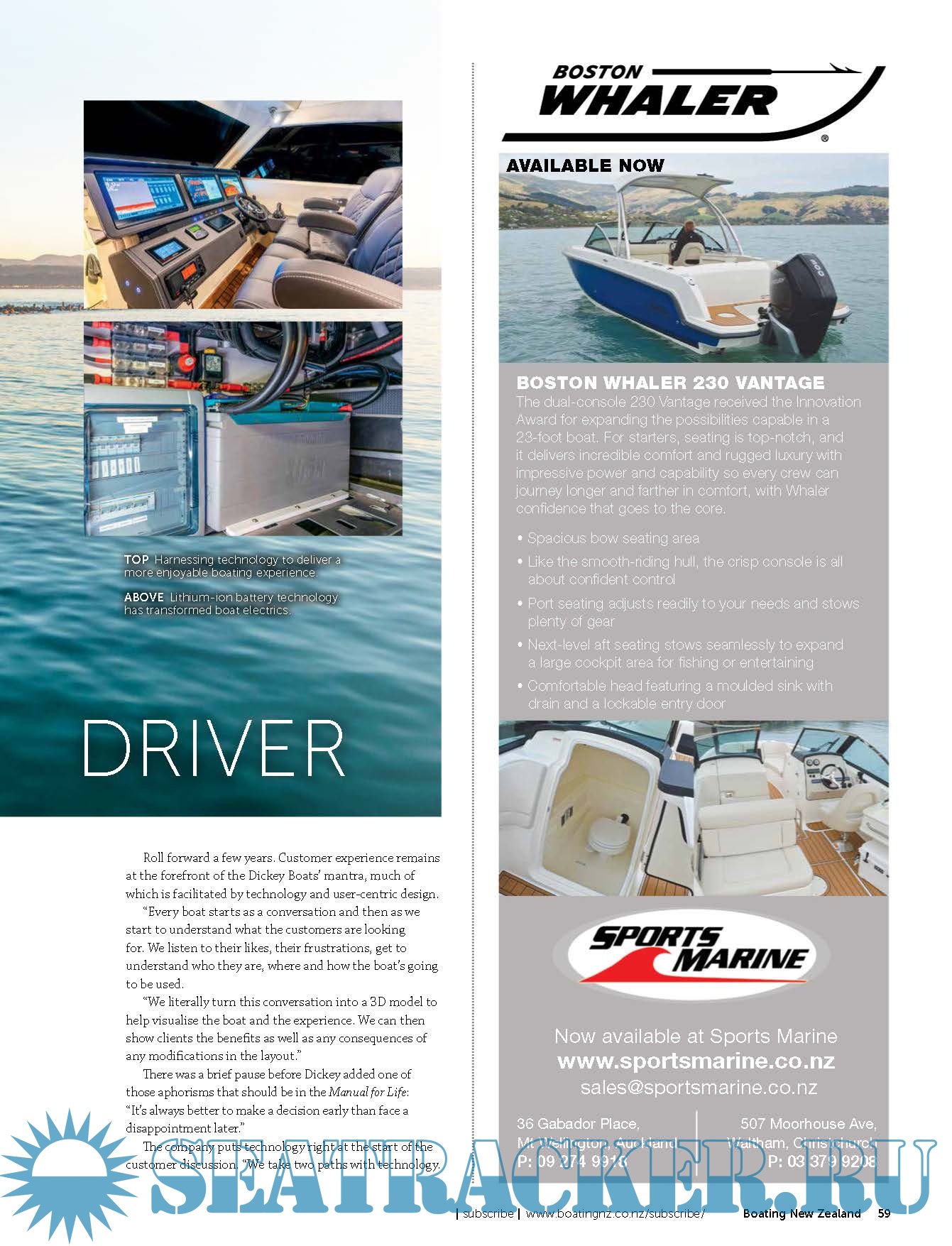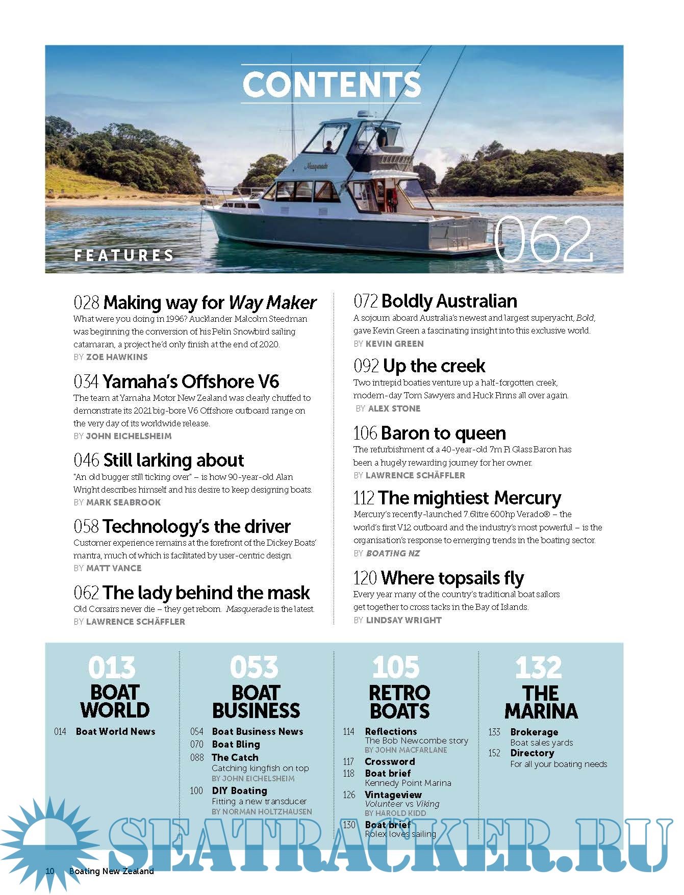 Description: Boating NZ is New Zealand's premier marine title devoted to putting its readers behind the wheel of the latest trailerboats, yachts and launches to hit the market. It inspires with practical content and cruising adventures, leads the fleet with its racing coverage and is on the pulse of the latest maritime news and innovation.