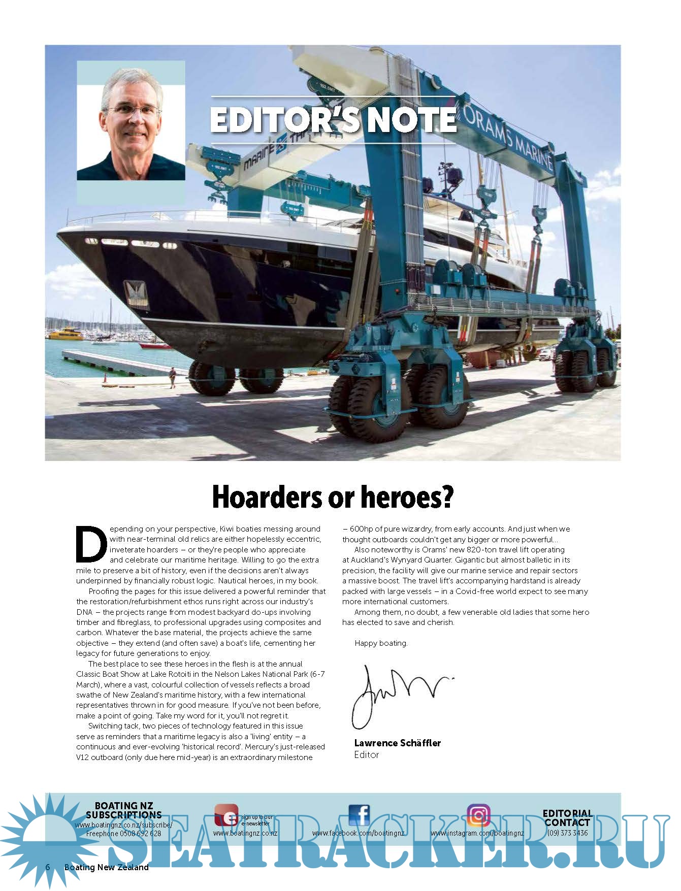 Year: 2021 Language: english Author: Lawrence Schäffler - Editor Genre: Periodical (magazine) Publisher: Tim Porter Edition: March 2021 Format: PDF Quality: Photo of pages Pages count: 164 Description: Boating NZ is New Zealand's premier marine title devoted to putting its readers behind the wheel of the latest trailerboats, yachts and launches to hit the market. It inspires with practical content and cruising adventures, leads the fleet with its racing coverage and is on the pulse of the latest maritime news and innovation.