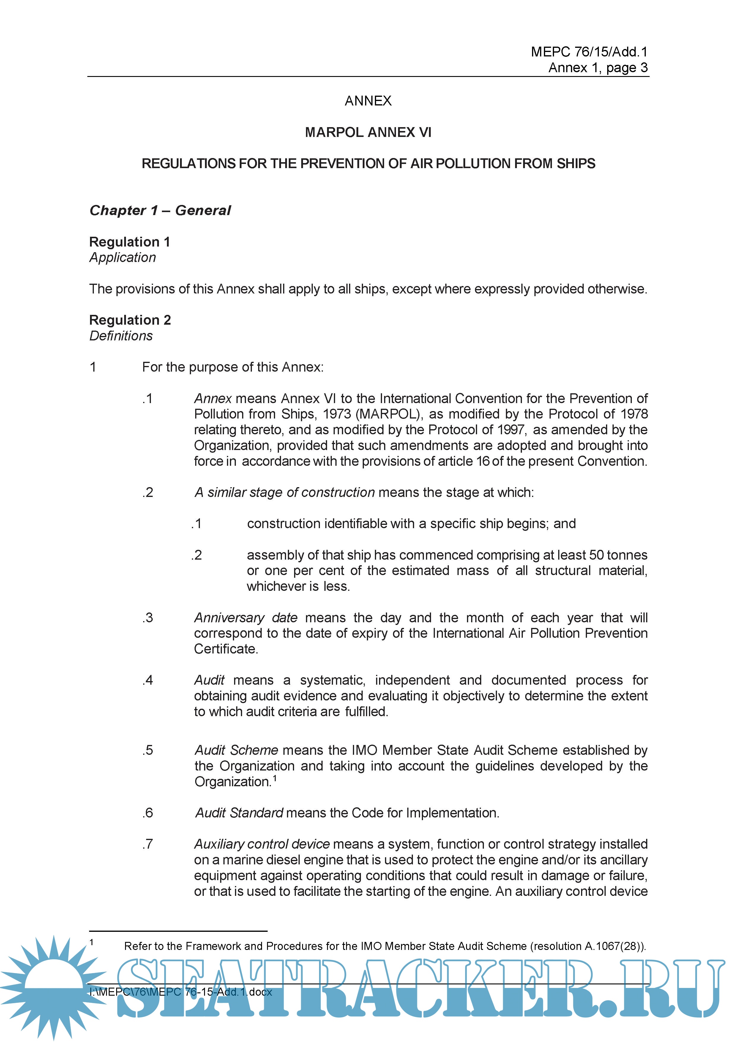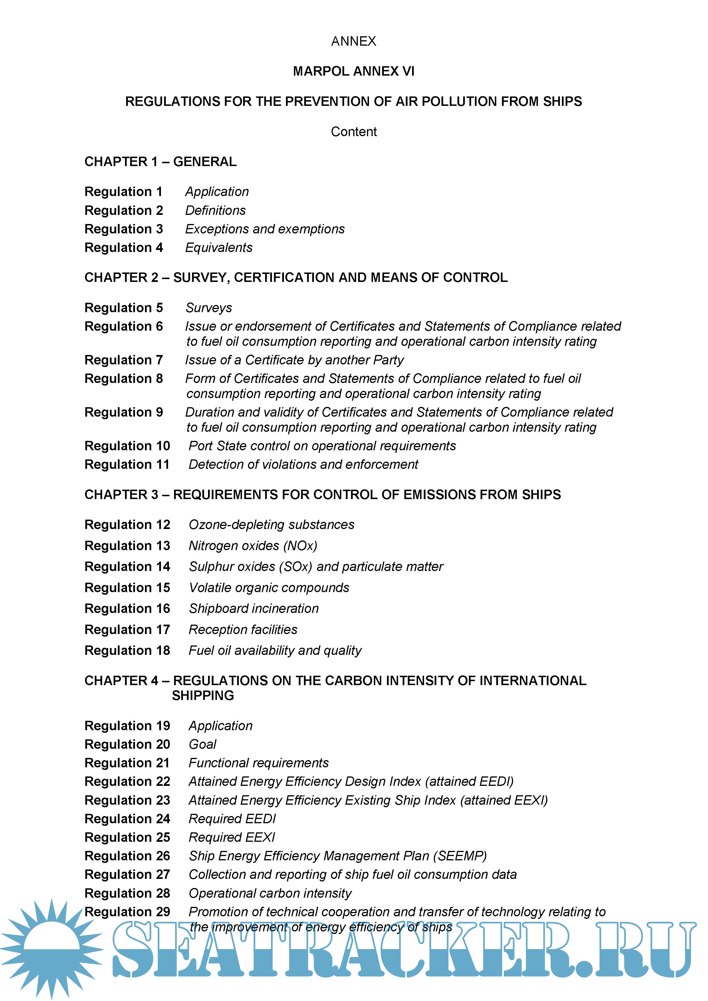 REGULATIONS FOR THE PREVENTION OF AIR POLLUTION FROM SHIPS