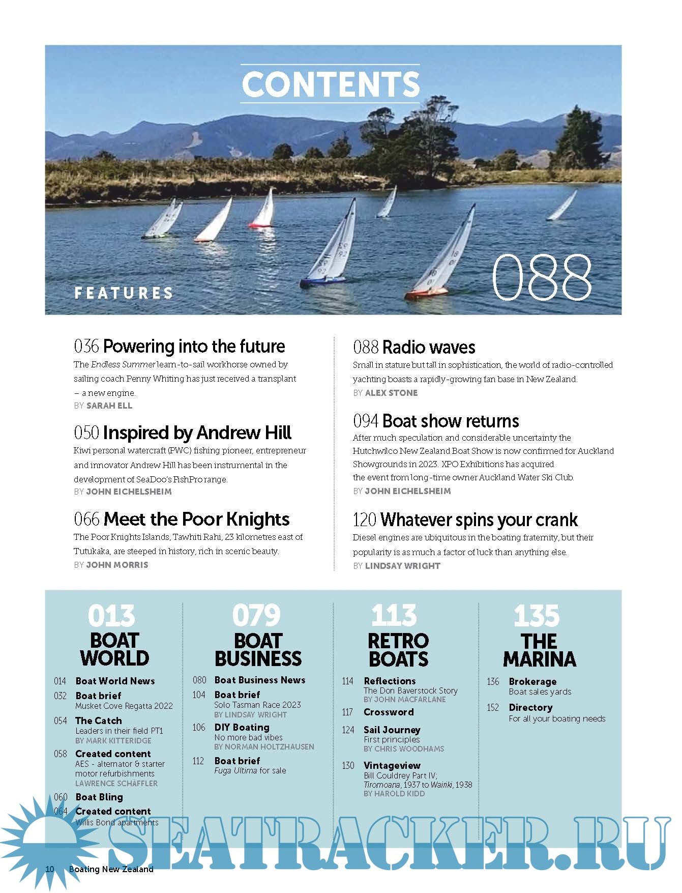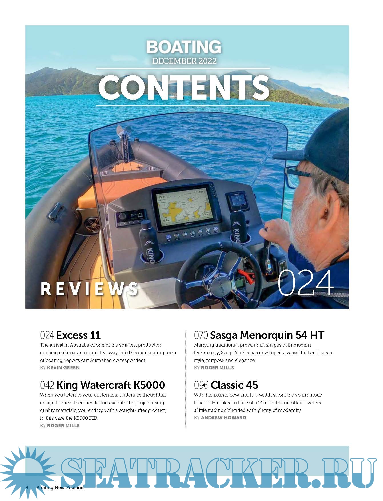 Year: 2022 Language: english Author: Lawrence Schäffler - Editor Genre: Periodical (magazine) Publisher: Tim Porter Edition: December 2022 Format: PDF Quality: Photo of pages Pages count: 164 Description: Boating NZ is New Zealand's premier marine title devoted to putting its readers behind the wheel of the latest trailerboats, yachts and launches to hit the market. It inspires with practical content and cruising adventures, leads the fleet with its racing coverage and is on the pulse of the latest maritime news and innovation.
