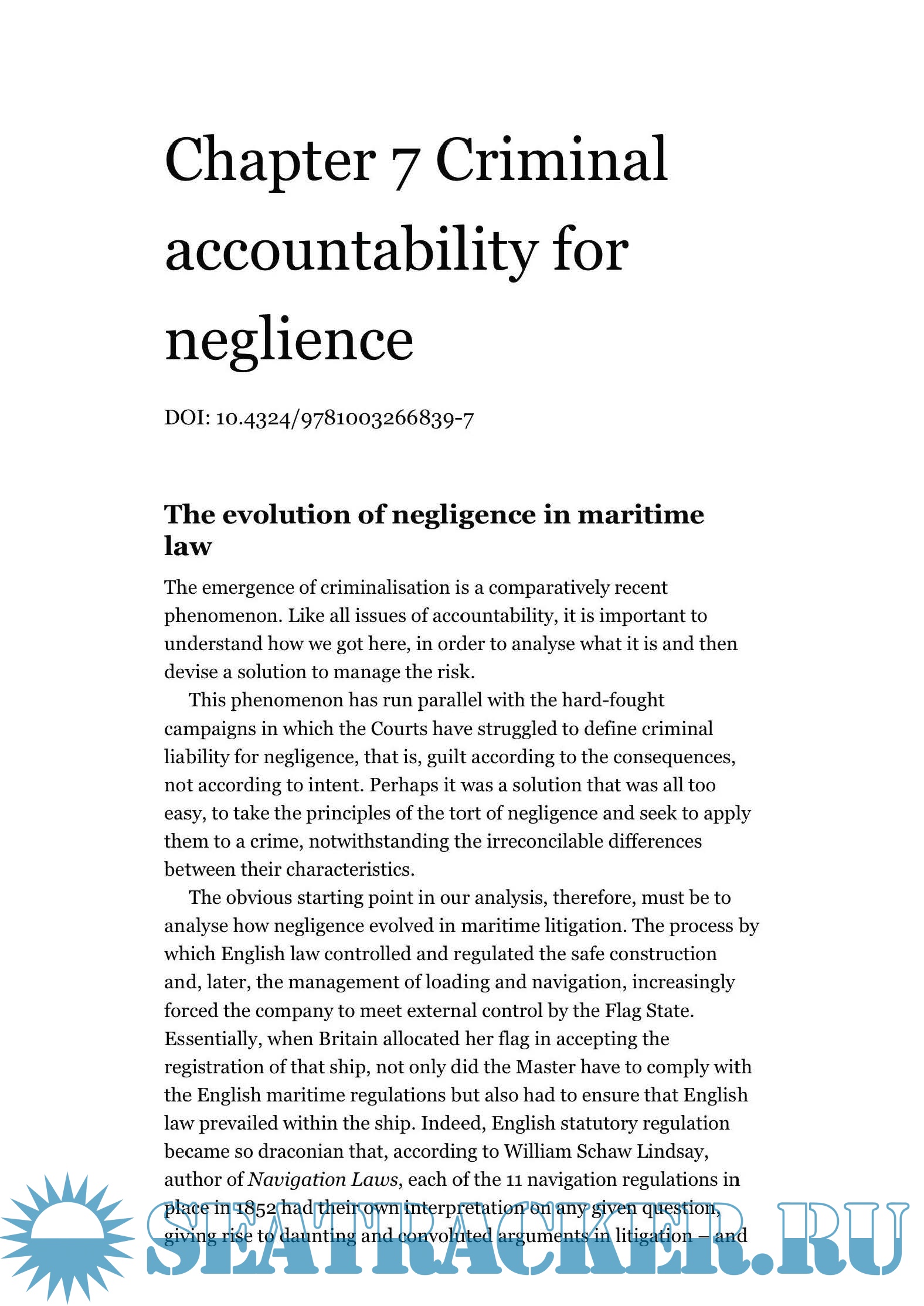 Additional info: https://www.routledge.com/Responsibility-and-Accountability-in-Maritime-Law-Criminalisation-of-the/Daniels/p/book/9781032211190