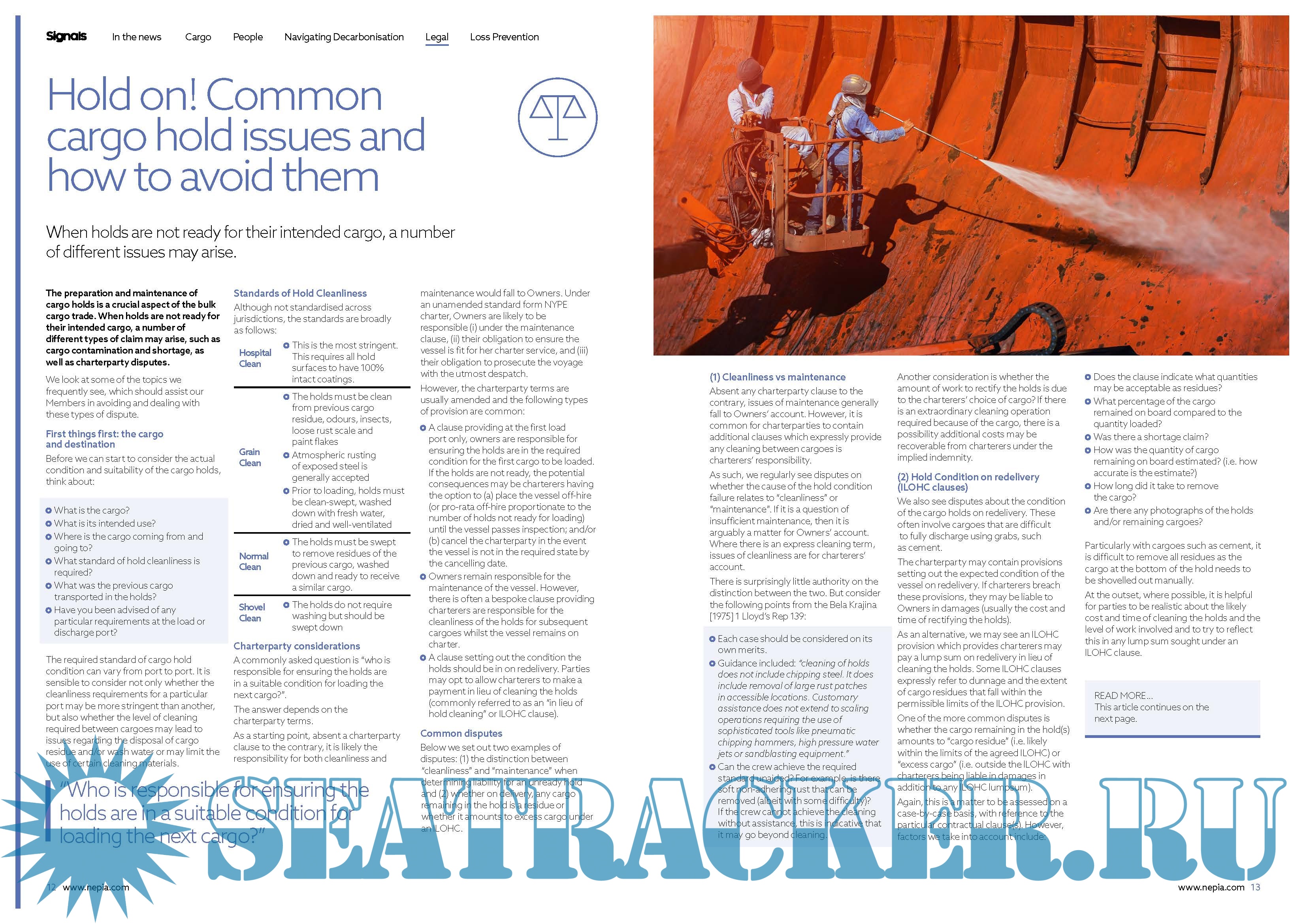 Year: 2022 Language: english Author: the North Genre: Periodical (magazine) Format: PDF Quality: eBook Pages count: 20 Description: Signals is North's loss prevention newsletter and is distributed to all Members, their ships, correspondents, brokers and other individuals on our mailing list. Signals is unique in the loss prevention field. Not only does it summarise recent case law, report on changesin legislation and identify problematic commodoties, but it also examines the implications and consequencesof these developments for shipowners and operators. Articles in this edition include: "Contents" Issue 126: Winter 2022