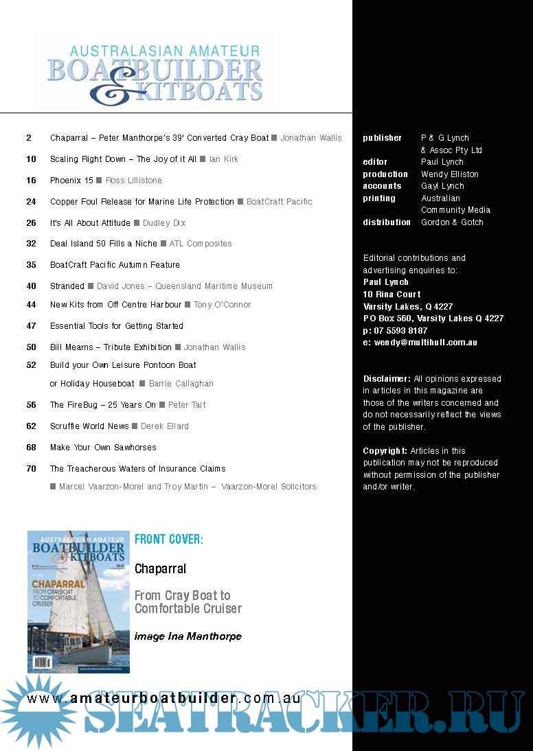 Description: Australialian Amateur Boat Builder Magazine is an Australian-based specialist publication devoted exclusively to Amateur Boat Building enthusiasts