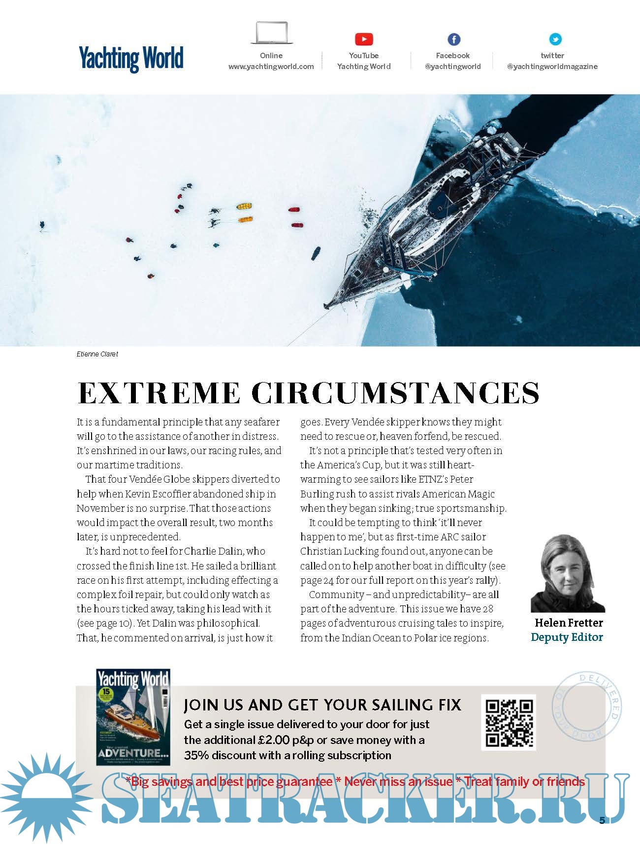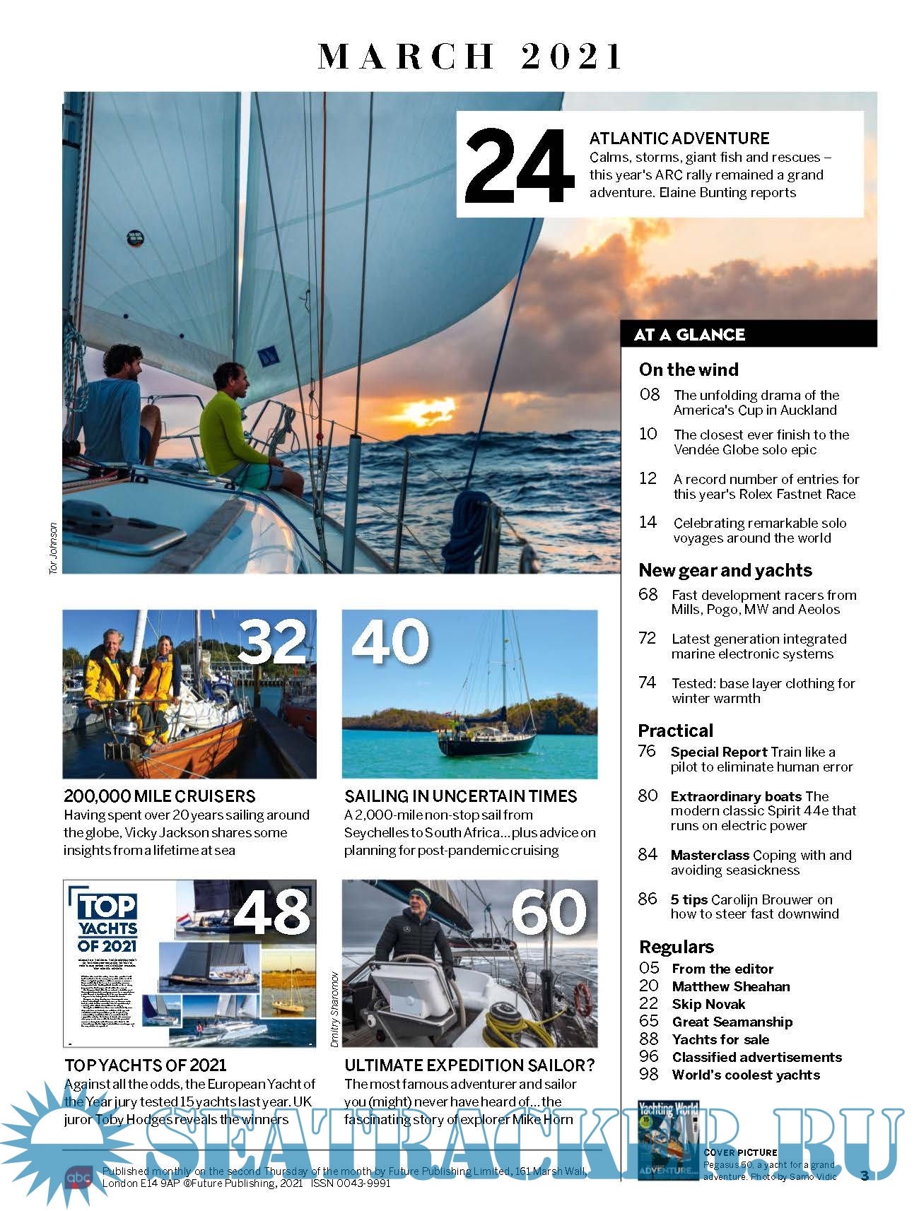 Year: 2021 Language: english Author: Helen Fretter – Editor Genre: Periodical (magazine) Publisher: Future Publishing Limited Edition: March 2021 Format: PDF Quality: Photo of pages Pages count: 100 Description: Yachting World has had its finger on the pulse of sailing since 1894 (though some of us joined a little more recently). We reckon we are the most enthusiastic sailing fans in the world: we love boats of all kinds, modern and classic, we like racing and cruising, are fascinated by innovation yet revere tradition, and nothing that floats is too big or too small for our tastes.