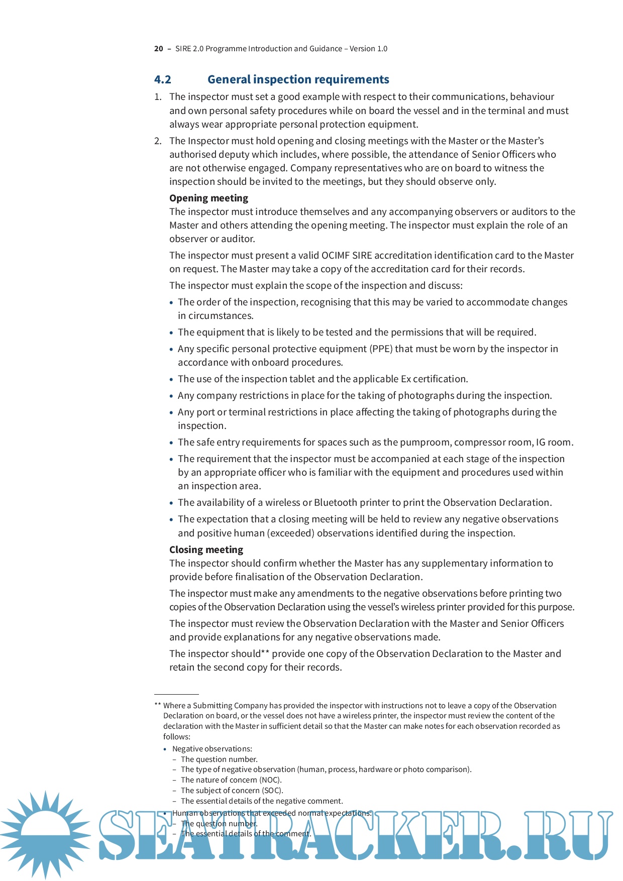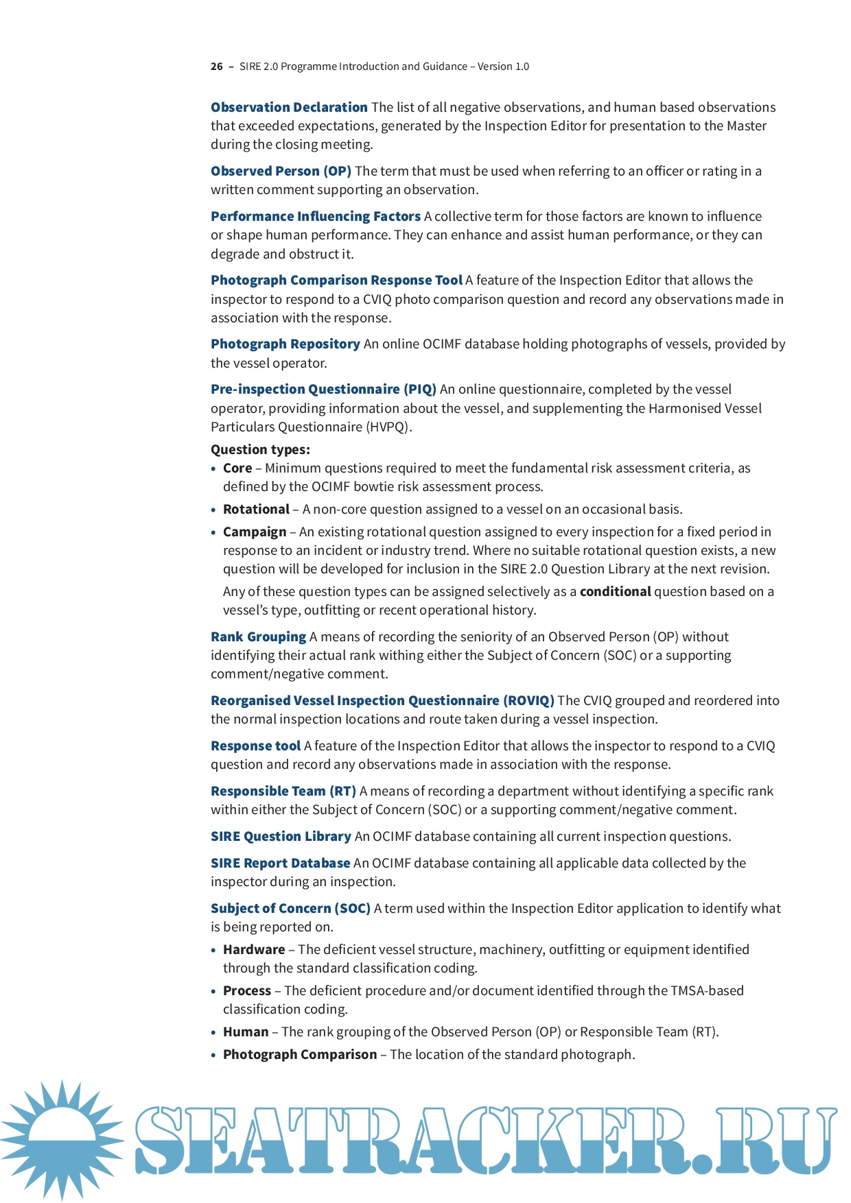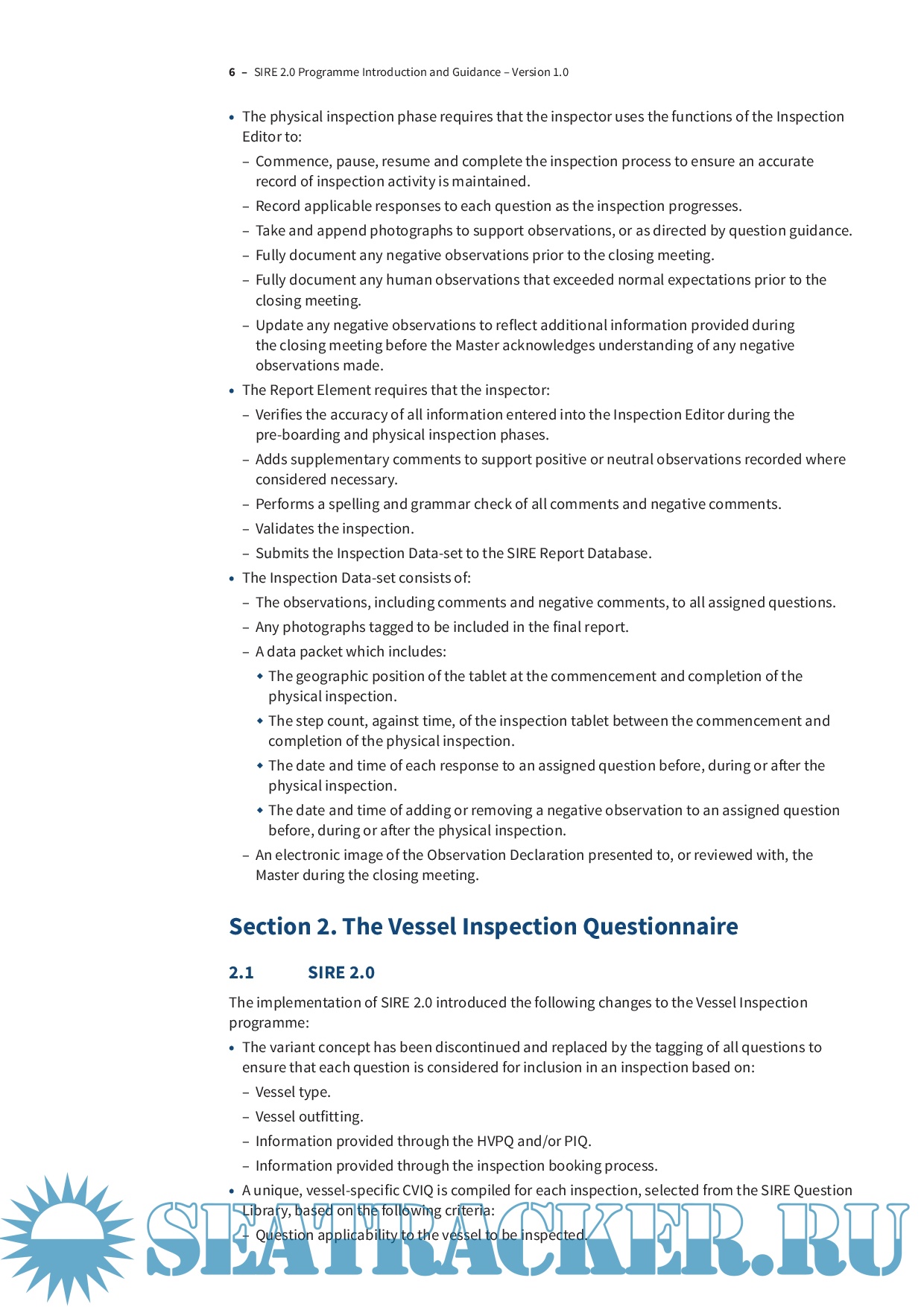 Description: This document applies to all vessels inspected under the SIRE 2.0 Programme, which includes: