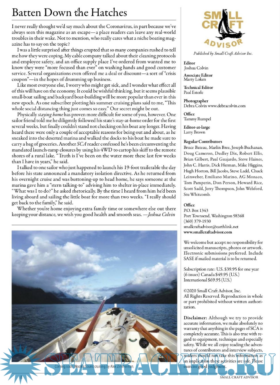 Year: 2020 Language: english Author: Small Craft Advisor Inc. Genre: Periodical (magazine) Publisher: Small Craft Advisor Inc. Edition: July/August 2020 Format: PDF Quality: Photo of pages Pages count: 84 Description: Small Craft Advisor Magazine