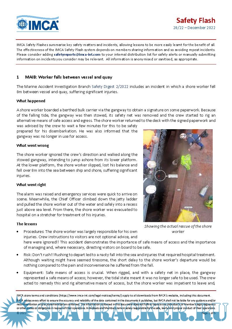 Safety Flash (issue 27/22) - IMCA [2022, PDF]