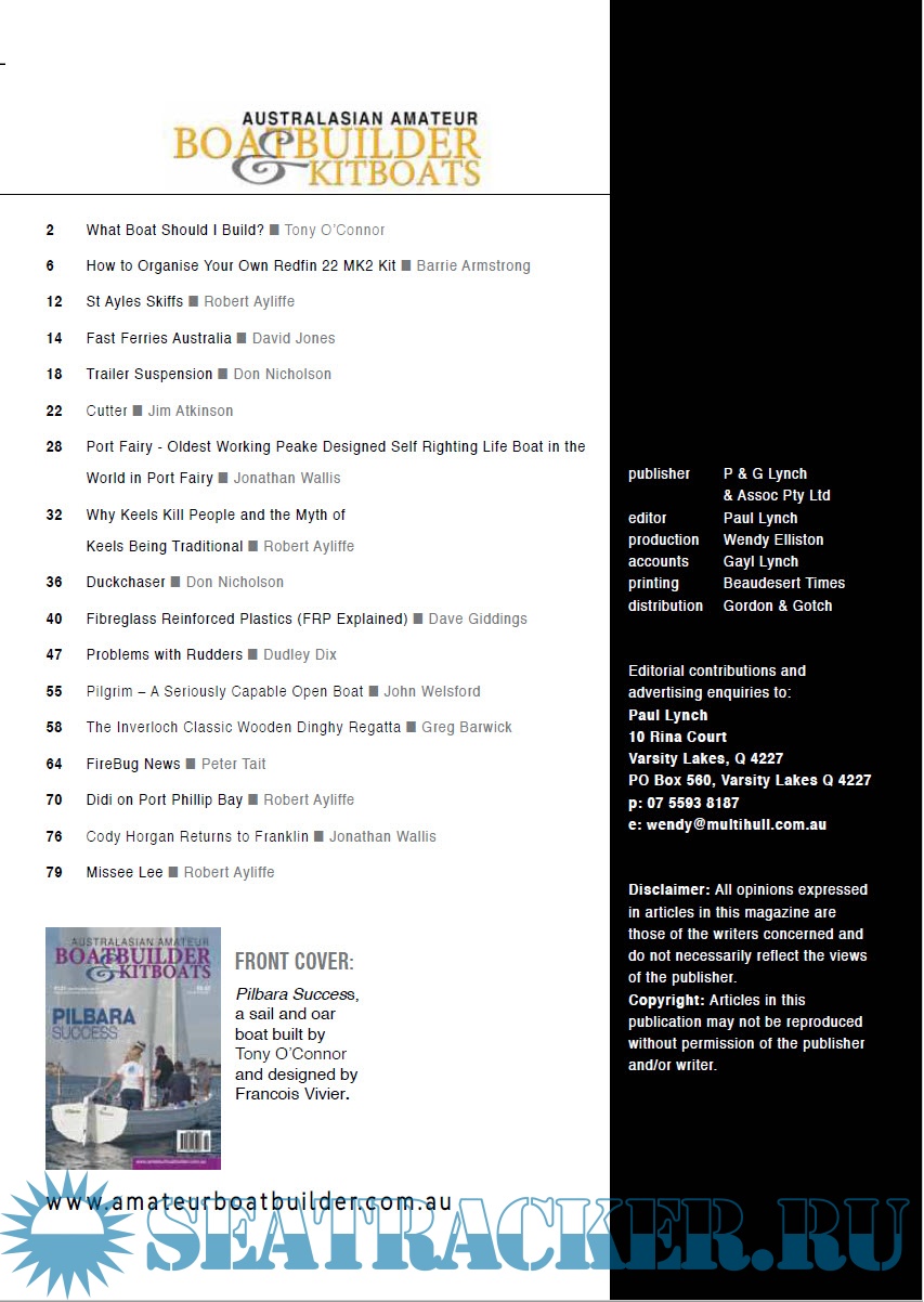 Description: Australian Amateur Boat Builder Magazine is an Australian-based specialist publication devoted exclusively to Amateur Boat Building enthusiasts