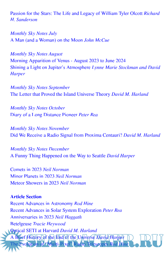 Year: 2022 Language: english Author: Brian Jones Publisher: Pen & Sword White Owl Format: PDF Quality: eBook Pages count: 394 Description: Maintaining its appealing style and presentation, the Yearbook of Astronomy 2023 contains comprehensive jargon-free monthly sky notes and an authoritative set of sky charts to enable backyard astronomers and sky gazers everywhere to plan their viewing of the year’s eclipses, comets, meteor showers and minor planets as well as detailing the phases of the Moon and visibility and locations of the planets throughout the year. To supplement all this is a variety of entertaining and informative articles, a feature for which the Yearbook of Astronomy is known. The Yearbook of Astronomy 2023 continues to be essential reading for anyone lured and fascinated by the magic of astronomy. It remains an inspiration to amateur and professional astronomers alike, and warrants a place on the bookshelf of all stargazers and watchers of the Universe.