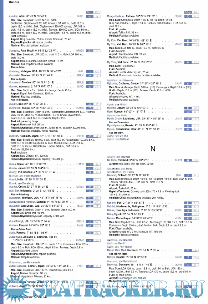 Three distinct sections are available starting with themed global maps on topic subjects such as MARPOL regulations, followed by over 60 pages of detailed map content displaying port and terminal locations, and finishing with the comprehensive port and terminal index. The essential supplementary information included within the index provides the exact port coordinates, official LOCODE, maximum size of vessel permissible by cargo type, nearest regional and international airports available for crew repatriation, refuelling availability, drydock availability and the nearest medical facilities.