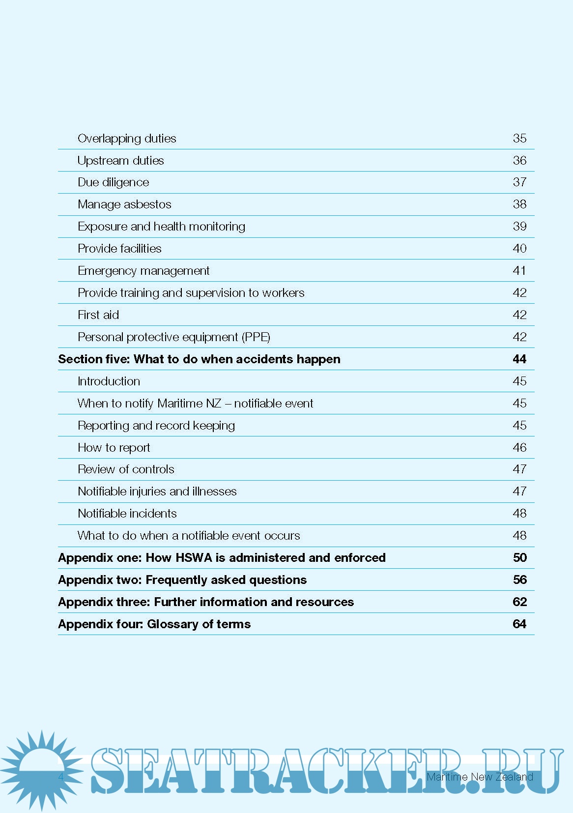 Year: 201x Language: english Author: Maritime New Zeland Genre: Guide Format: PDF Quality: eBook Pages count: 72 Description: This guide provides information about your responsibilities under the Health and Safety at Work Act 2015 (HSWA). This is your essential guide to meeting your health and safety obligations. It is relevant for everyone working in the maritime sector including: -Owners -Operators -Skippers -Crew -Stevedores -Jet boat drivers -Rafting guides -Self-employed crew, including sharefishers -Anyone who employs or contracts crew -Any other person who works on board, or employs or contracts someone to work on board a ship -Designers, manufacturers, importers, suppliers and installers of ships and plant and equipment on ships.