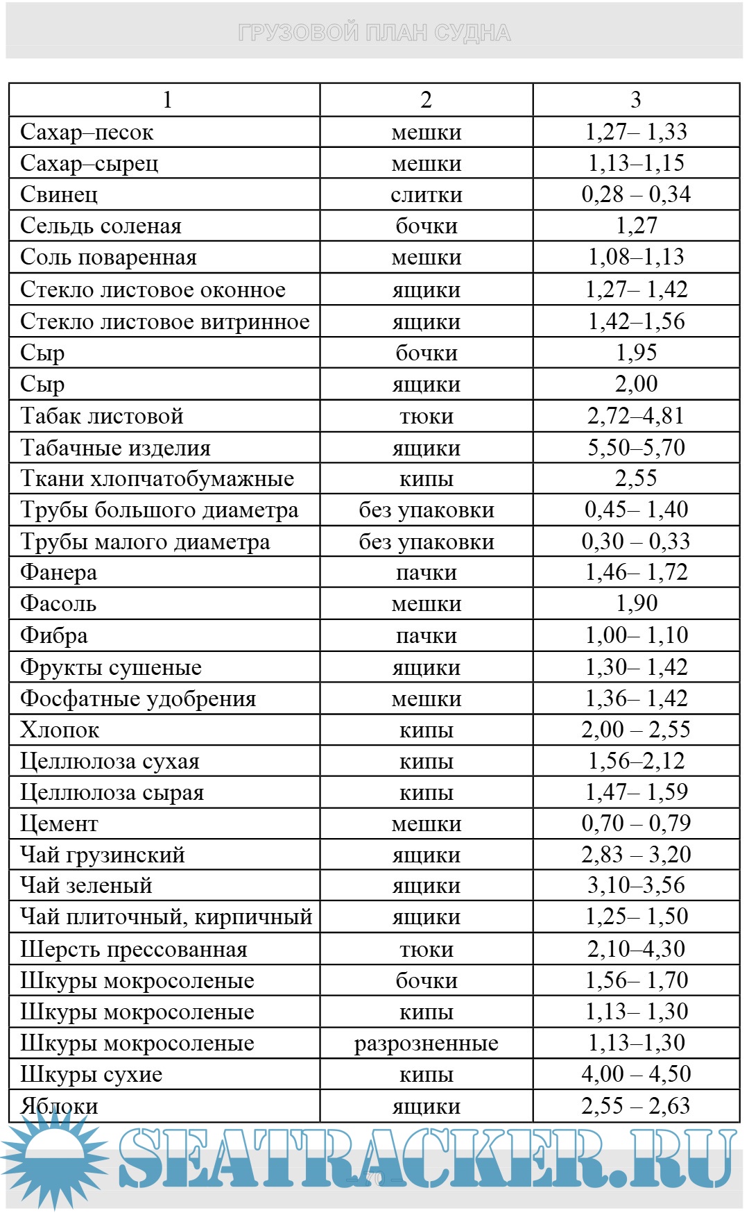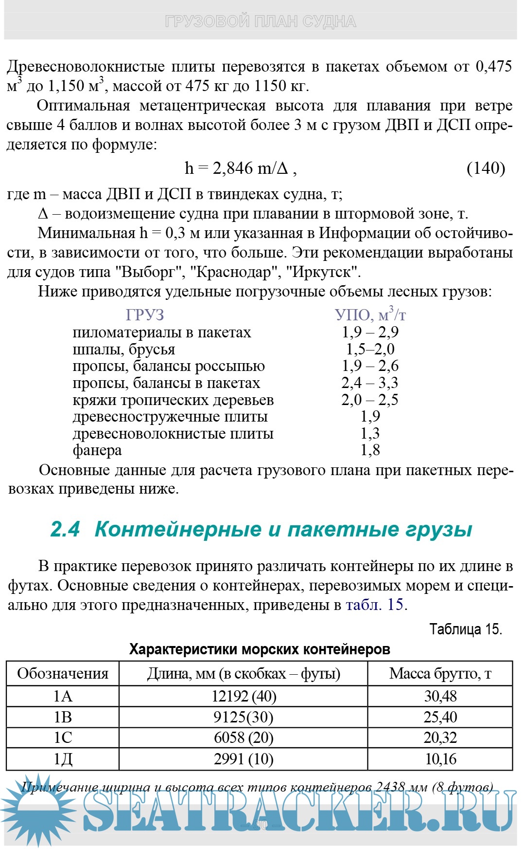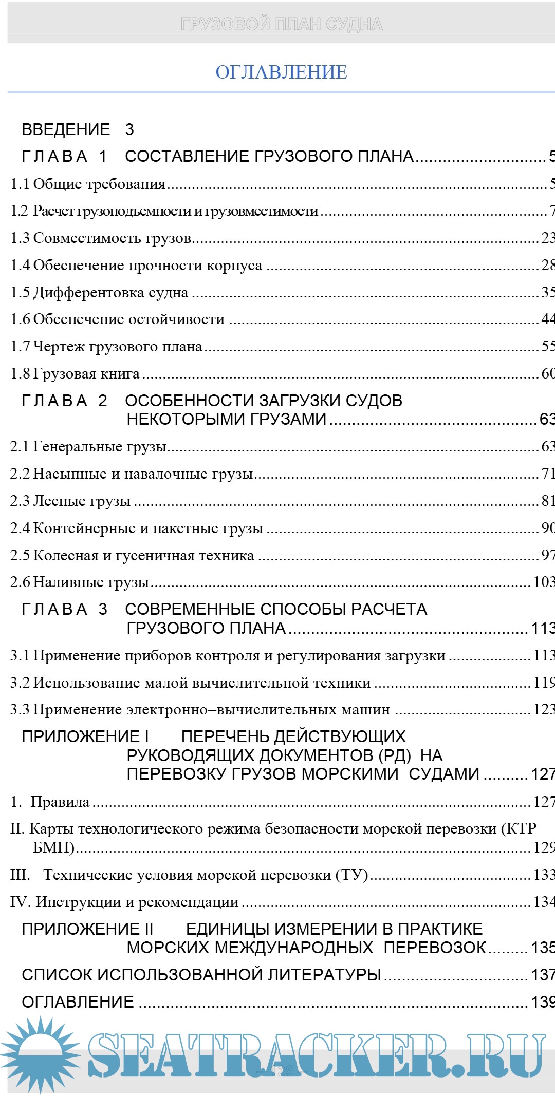 ления и способы расчета грузового плана судна, а также особен-