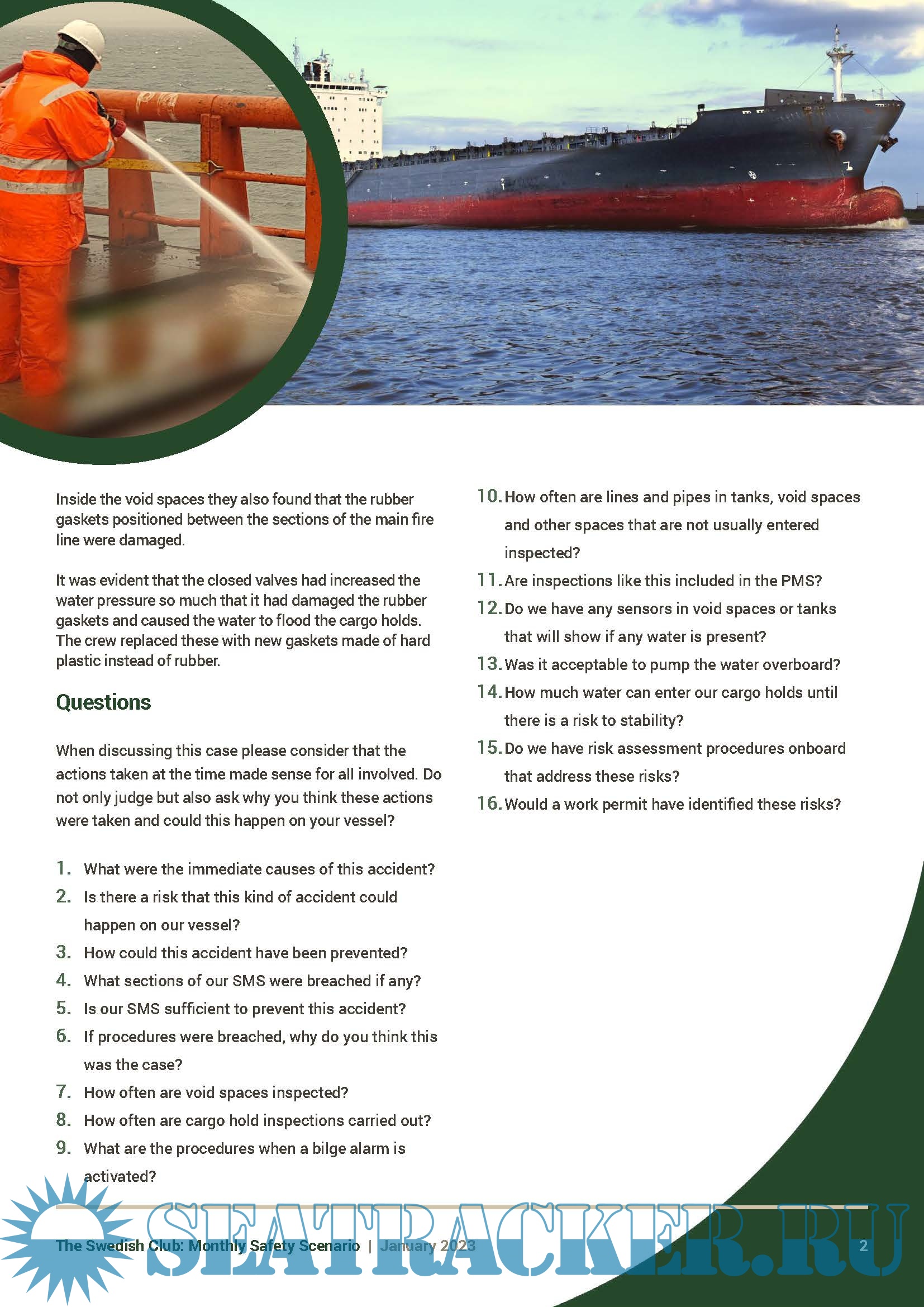 Monthly Safety Scenario (MSS) - Leaking gasket caused cargo damage - the Swedish Club [2023, PDF]