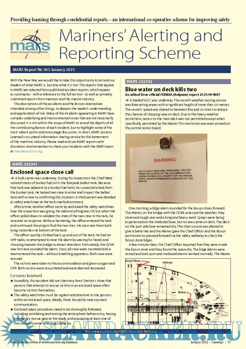 Mariners’ Alerting and Reporting Scheme (MARS) Report - March-April, 2023 - The Nautical Institute…