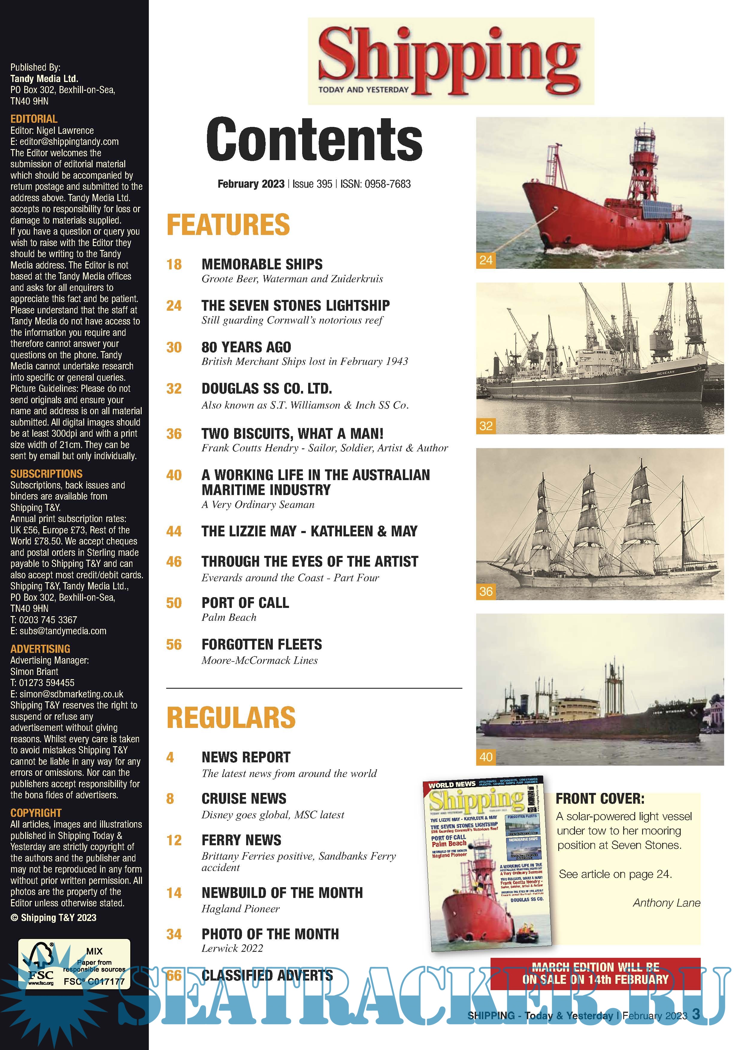 Description: Shipping Today & Yesterday is a specialist magazine for the shipping enthusiast offering up-to-date information, topical and in-depth historical articles.