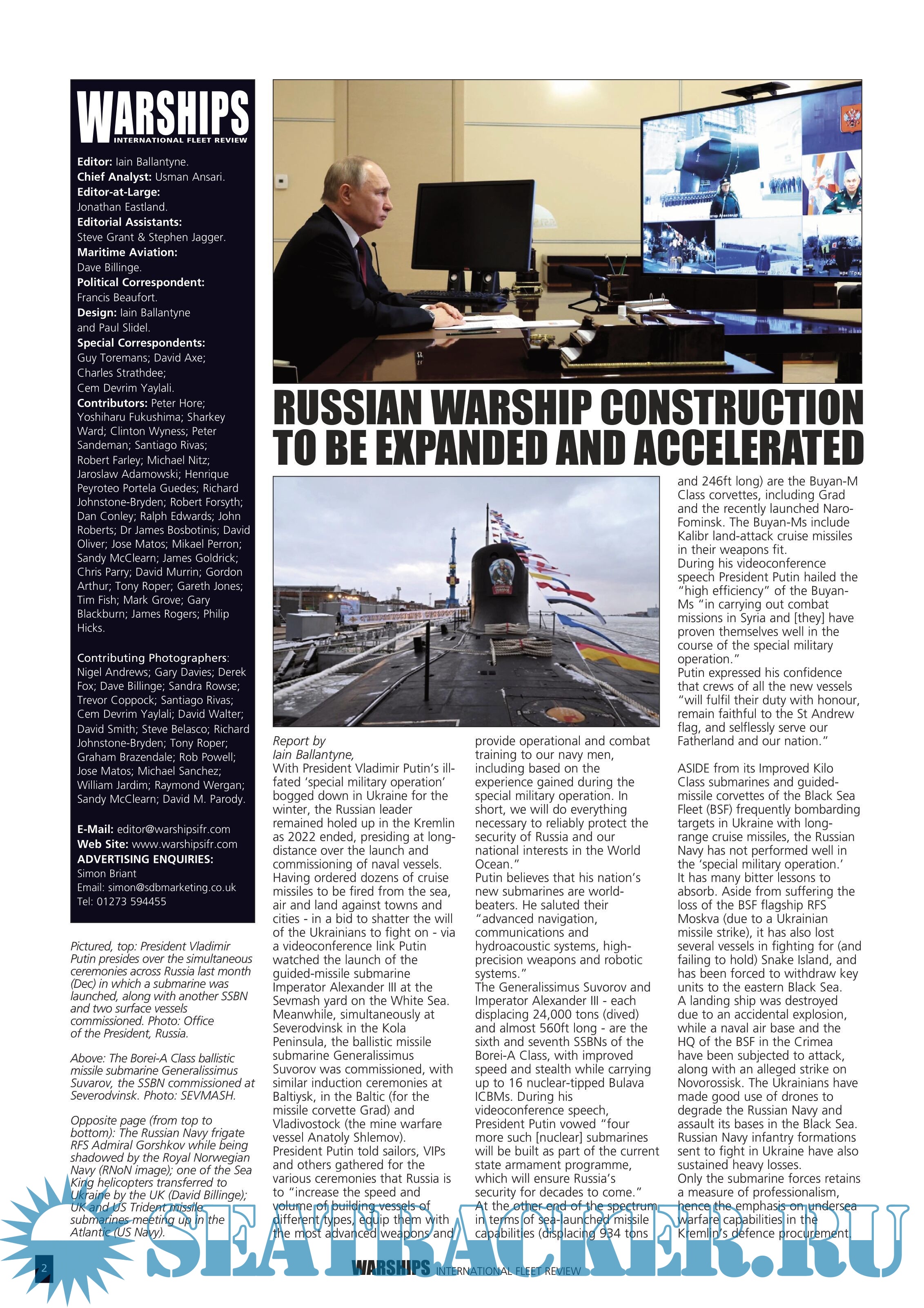 WARSHIPS International Fleet Review is published 12 times a year by Tandy Media Ltd who also publish Shipping Today & Yesterday (which provides news and features from the world of merchant shipping).