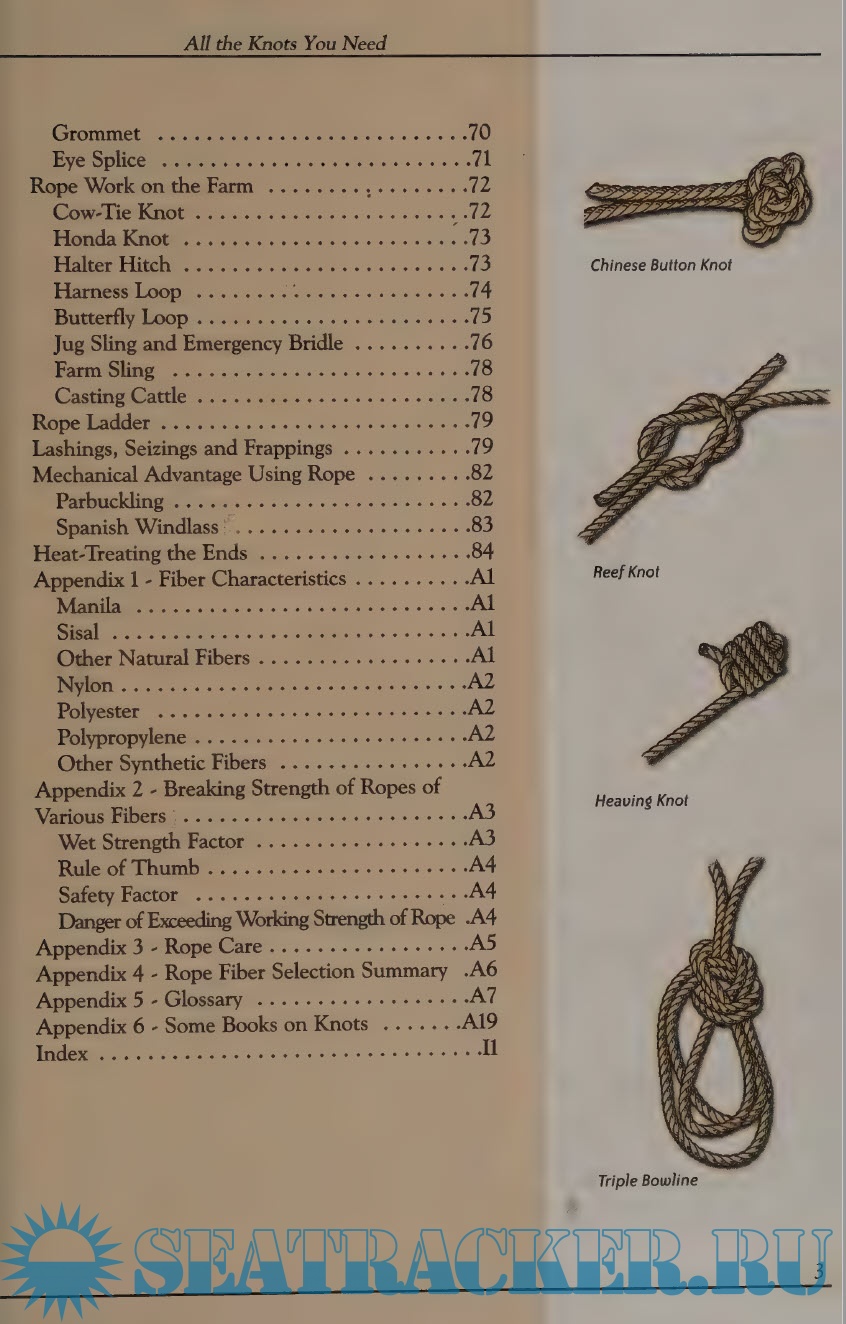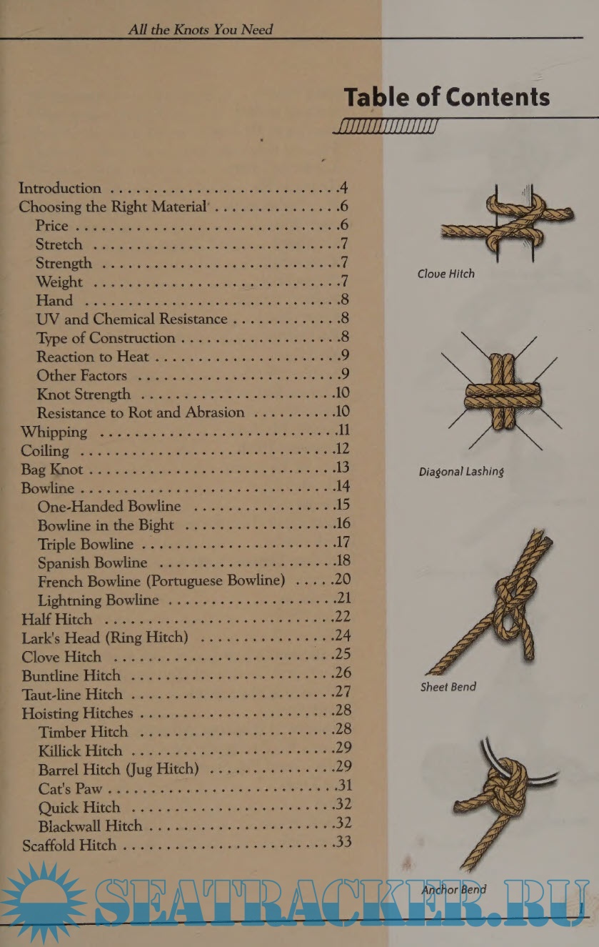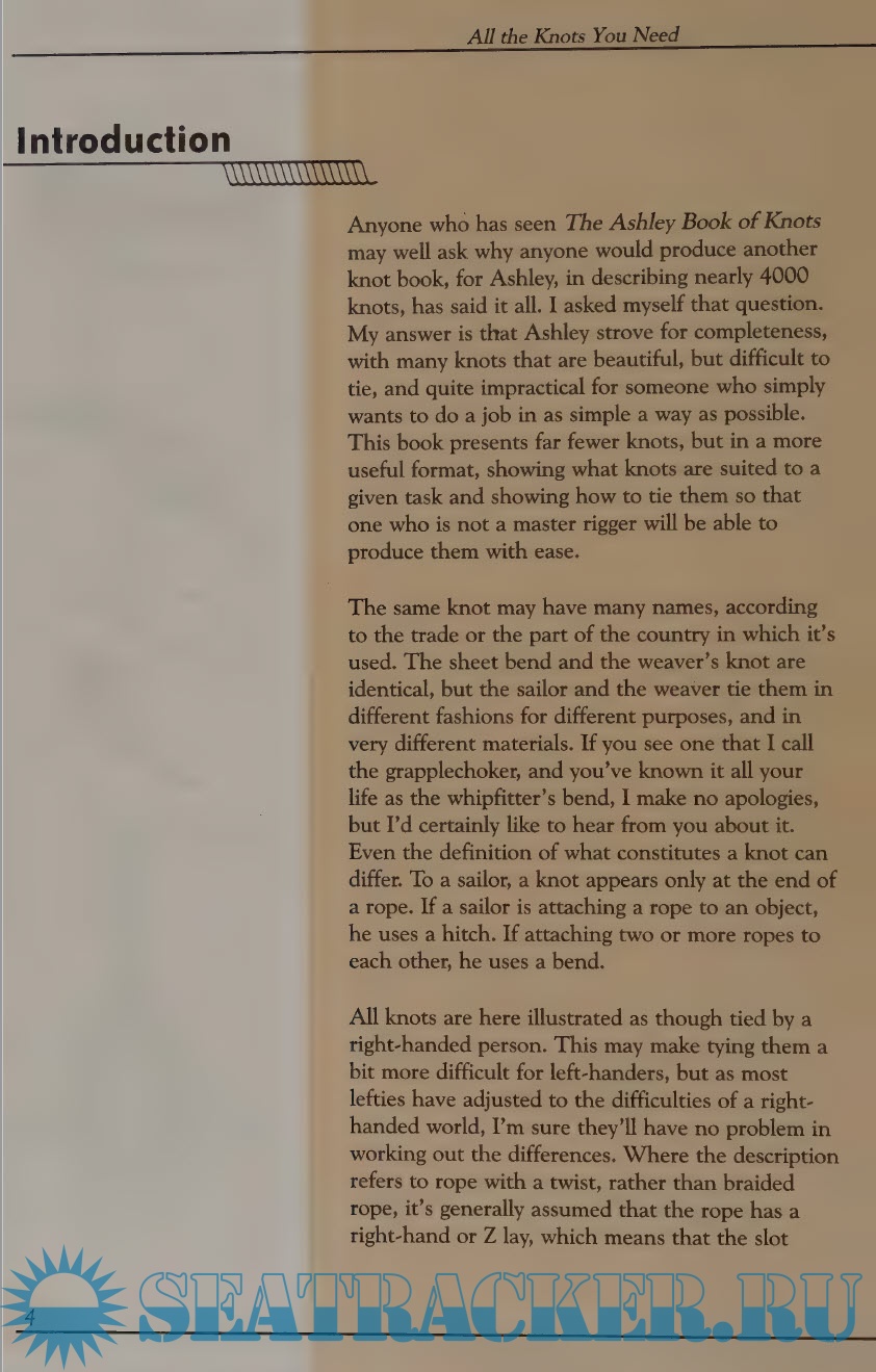 Year: 1999 Language: english Author: R. S. Lee Genre: Handbook Publisher: Algrove Publishing Edition: First ISBN: 978-0921335474 Format: PDF Quality: Scanned pages Pages count: 120 Description: All I've ever known how to tie is a "Granny knot" for my shoes ... I wanted to be able to do more than that, and thankfully stumbled onto this book. It covers a lot of material in just 84 pages and several appendices ... even how to choose the right rope for the task. In the words of the author in the introduction of the book, "This book presents far fewer knots [than The Ashley Book of Knots], but in a more useful format, showing what knots are suited to a given task and showing how to tie them so that one who is not a master rigger will be able to produce them with ease." Sure, some people might want a thick encyclopedia with 4,000 different knots ... but if you want something that is simple, useful, and comprehensive without being overwhelming ... in my opinion, this is the book. Warning for "left-handers" ... all knots are here illustrated as though tied by a right-handed person ... so you may need to adapt.