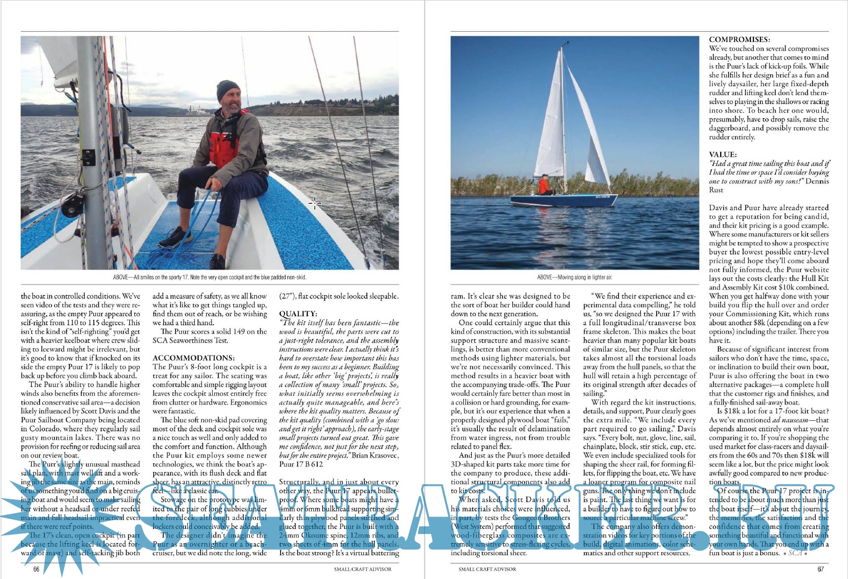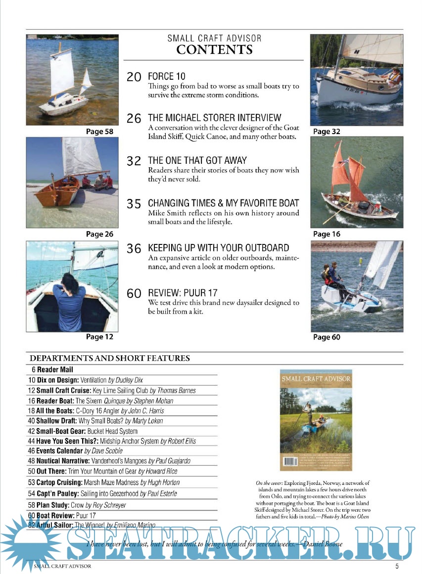 Description: Small boats, big adventure! The only magazine focused on small and trailerable sailboats, cruising, and adventure. Each issue features places to sail, how-to and modification articles, a plan study for the boat builder, and a feature-length review of a production sailboat.