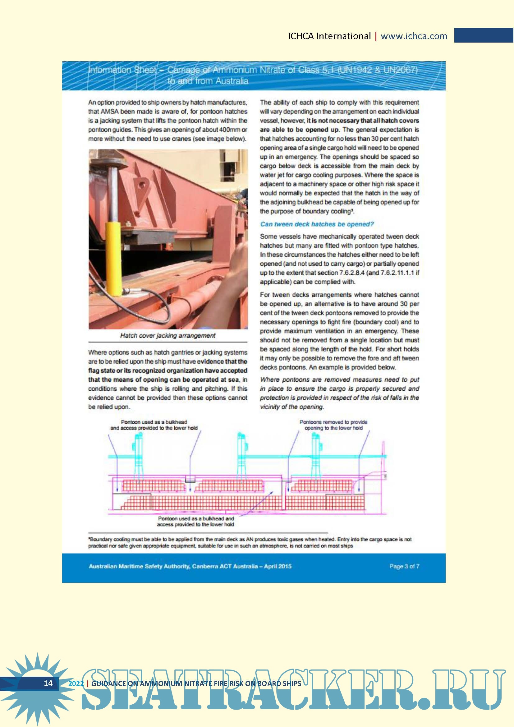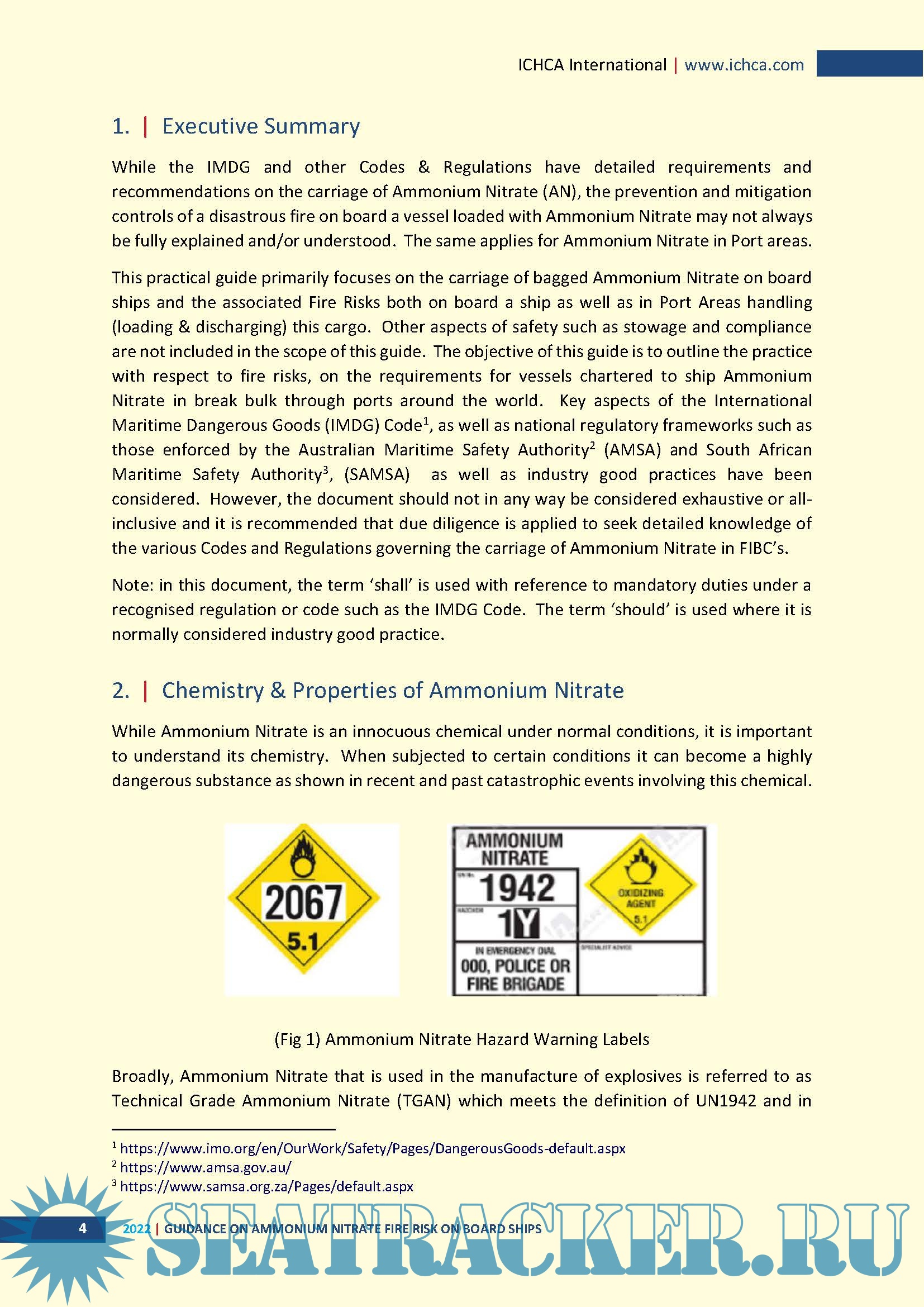 Description: This document provides an introduction to Ammonium Nitrate fire risk on board ships. For detailed advice it is necessary to read this in conjunction with relevant national and international legislation and guidance.