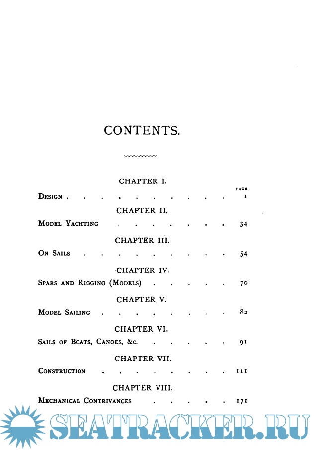 Design, construction, and sails, with some of the principles which underlie them, are touched on, but practical hints and details of craft likely to be of use to the amateur, form the bulk of the contents.
