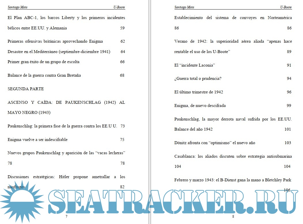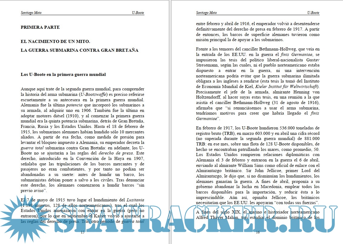 Year: 2003 Language: spanish Author: Santiago Mata ISBN: ISBN: 84-96107-00-4 Format: PDF Quality: eBook Pages count: 355 Description: Aunque aquí trate de la segunda guerra mundial, para comprender la historia del arma submarina (U-Bootswaffe) es preciso referirse escuetamente a su antecesora en la primera guerra mundial. Alemania fue la última potencia que incorporó los submarinos a su armada, al adquirir uno en 1906. También fue la última en adoptar motores diésel (1910), y al comenzar la primera guerra mundial era la quinta potencia submarina, detrás de Gran Bretaña, Francia, Rusia y los Estados Unidos. Hasta el 18 de febrero de 1915, los submarinos alemanes habían hundido sólo 10 mercantes aliados. A partir de esa fecha, como medida de presión para levantar el bloqueo impuesto a Alemania, su emperador decreta la guerra total submarina contra Gran Bretaña: en adelante, los UBoote no se ajustarán a las reglas del derecho de presa. Este derecho, introducido en la Convención de la Haya en 1907, señalaba que las tripulaciones de los barcos mercantes y de pasajeros no eran combatientes, y por tanto no podían ser abandonadas a su suerte: antes de hundir un barco, los submarinistas debían poner a salvo a los civiles. Tras denunciar este derecho, los alemanes comenzaron a hundir barcos “sin previo aviso”. Additional info: My other giveaways: https://seatracker.club/tracker...id=13371#results