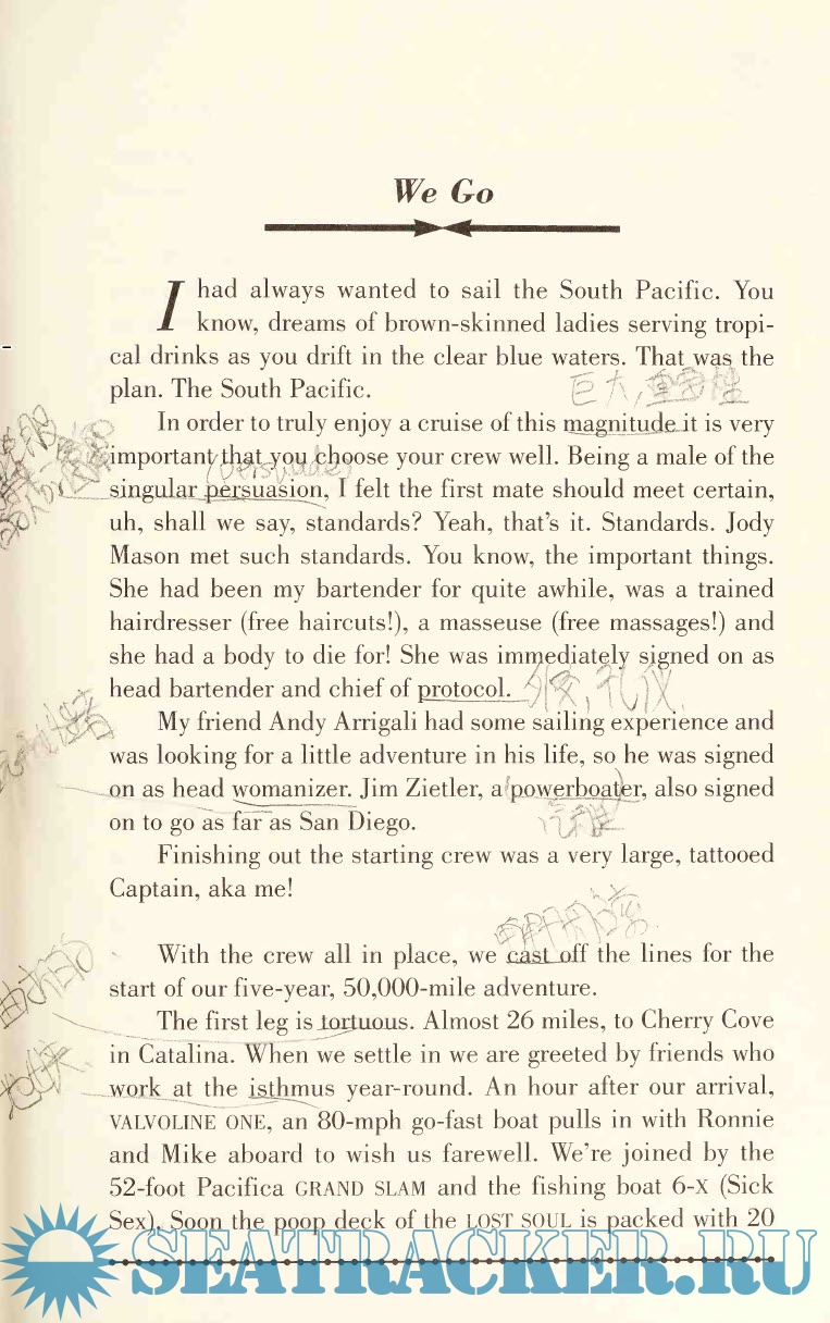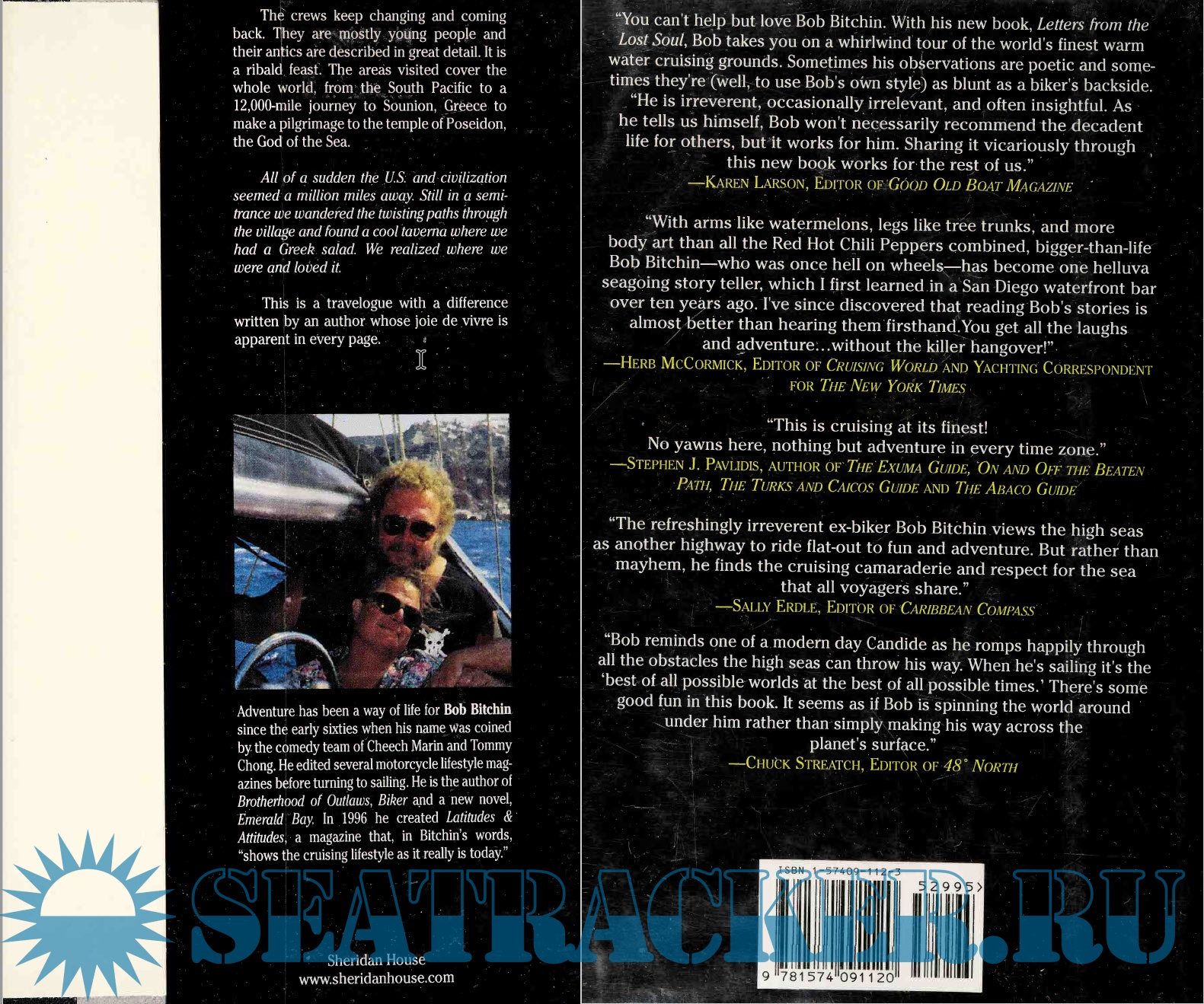 Year: 2000 Language: English Author: Bob Bitchin Genre: Textbook Publisher: Sheridan House Edition: First ISBN: 978-1574091120 Format: PDF & EPUB Quality: Scanned pages Pages count: 289 Description: Attitude is the only difference between an ordeal and an adventure. That's the adage Bob Bitchin lives by as he ventures across the Pacific and Atlantic Oceans in his 1981 Formosa 56, the LOST SOUL. Highlighting five years and 45,000 miles in a compact, analogy-laden book, Bob takes the reader from California to French Polynesia and back in a mere 83 pages; followed by another 51 pages of cruising down the West Coast and through the Caribbean on to the Azores; and then he squeezes in the Mediterranean and return passages, back to California, in the final 100 pages. ― Good Old Boat Anyone who is familiar with the American sailing magazine Latitudes & Attitudes, will know exactly what to expect from Bob Bitchin, who edits a publication that is down-to-earth, irreverent, and always entertaining perhaps the main reasons for its success. If you have never read the magazine, then the following few lines from the book will give you an idea of the man and his approach not only to writing, but to life, in which his huge passion is sailing. The lines come soon after the start of the book, when he has more or less got his yacht, LOST SOUL, ready to go. He writes 'We had everything working as well as could be expected, and I was as anxious to set sail as a virgin for her first orgy.' And so begins a five-year voyage of discovery and adventure as Bob and his wife Judy circumnavigate on their staysail ketch. The Bitchins sailed over 50,000 miles in five years, and visited 50 countries. They anchored in 300 different anchorages and stopped at 150 islands. In that time, they had a dozen different crew members, 40 guests, and used more than 20 mechanics who spoke six languages other than English. Bitchin is the sort of guy to whom anything can happen, and usually does. But life, for this Hell's Angel-like character is a romp, and he sails along happily, overcoming all obstacles. Sail with him, you will enjoy it. ― Sailing and Yachting Additional info: About the Author Bob Bitchin founded the wildly successful Lattitudes & Attitudes magazine.