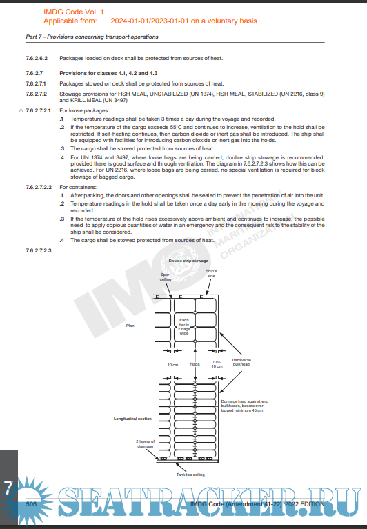 Description: The International Convention for the Safety of Life at Sea, 1974 (SOLAS), as amended, deals with various aspects of maritime safety and contains in chapter VII the mandatory provisions governing the carriage of dangerous goods in packaged form or in solid form in bulk. The carriage of dangerous goods is prohibited except in accordance with the relevant provisions of chapter VII, which are amplified by the International Maritime Dangerous Goods Code (IMDG Code).Regulation II-2/19 of the SOLAS Convention, as amended, specifies the special requirements for a ship intended to carry dangerous goods, the keel of which was laid or which was at a similar stage of construction on or after 1 July 2002.