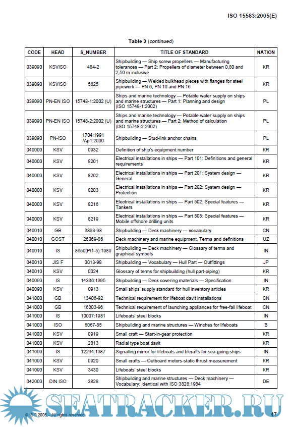 Year: 2005 Language: english Author: ISO Format: PDF Quality: eBook Pages count: 102 Description: This International Standard provides the list of existing maritime standards of ISO and eight (8) shipbuilding nations in the world (The People’s Republic of China, Germany, India, Japan, The Republic of Korea, Poland, Russian Federation and The United States of America) as of the year 2002 by classifying the maritime standards of the aforesaid organization and nations into the codes that correspond to the existing organization of subcommittees of ISO/TC 8 as specified hereunder. Note: reviewed 2019 by ISO and found to be current. There is an INSANE amount of standards in our maritime world.