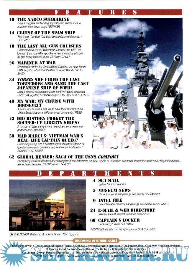Description: Read about the world’s major sea battles and first-hand accounts from the men who fought and lived through them. From the early days of sailing vessels to the post-Cold War nuclear navies of today, Sea Classics has it all.