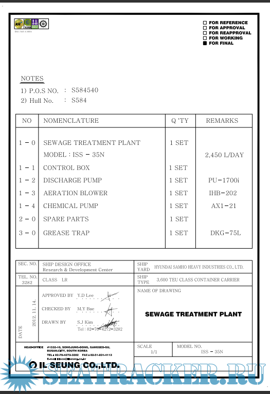 Year: 2012 Language: english Author: IL Seung Co.,Ltd Genre: Manual Format: PDF Quality: eBook Pages count: 51 Description: Sewage treatment plant ISS series treats waste water with a large amount of fixed contact media. Model >> ISS -35N -The way in which the waste water is oxidized and decomposed by microorganisms (bacteria) attached to fixed contact media -Adoption of Feed-back system of solid matter and activated carbon -Sludge production is low due to the long solids retention time -Each tank can be divided and replaced -Low maintenance cost and easy maintenance (Activated Carbon provides much lower maintenance cost than Membrane type.)