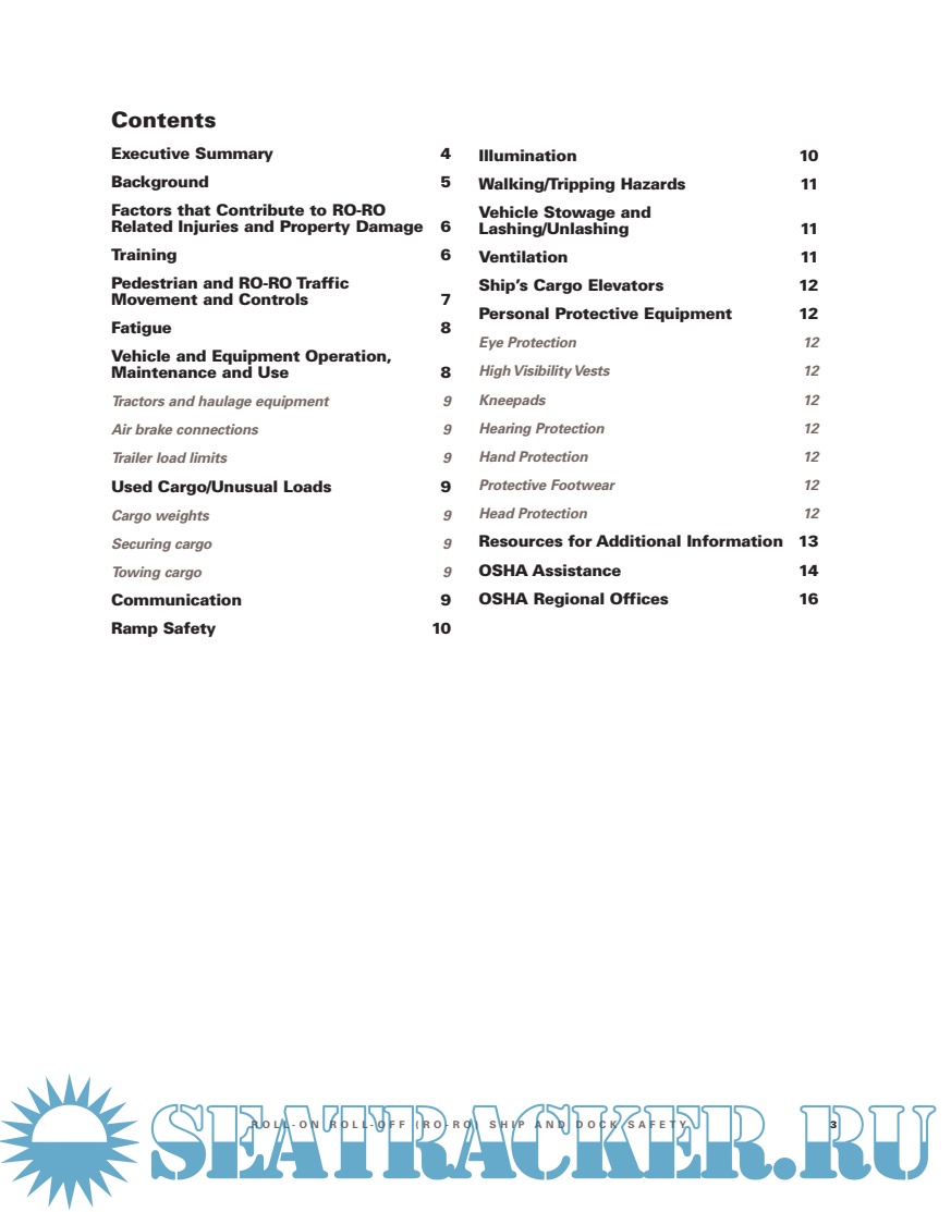 Description: This guidance document will help marine cargo handling employers and workers involved in roll-on roll-off (RO-RO) operations recognize hazards and prevent accidents, injuries and fatalities when loading or unloading ships in port.