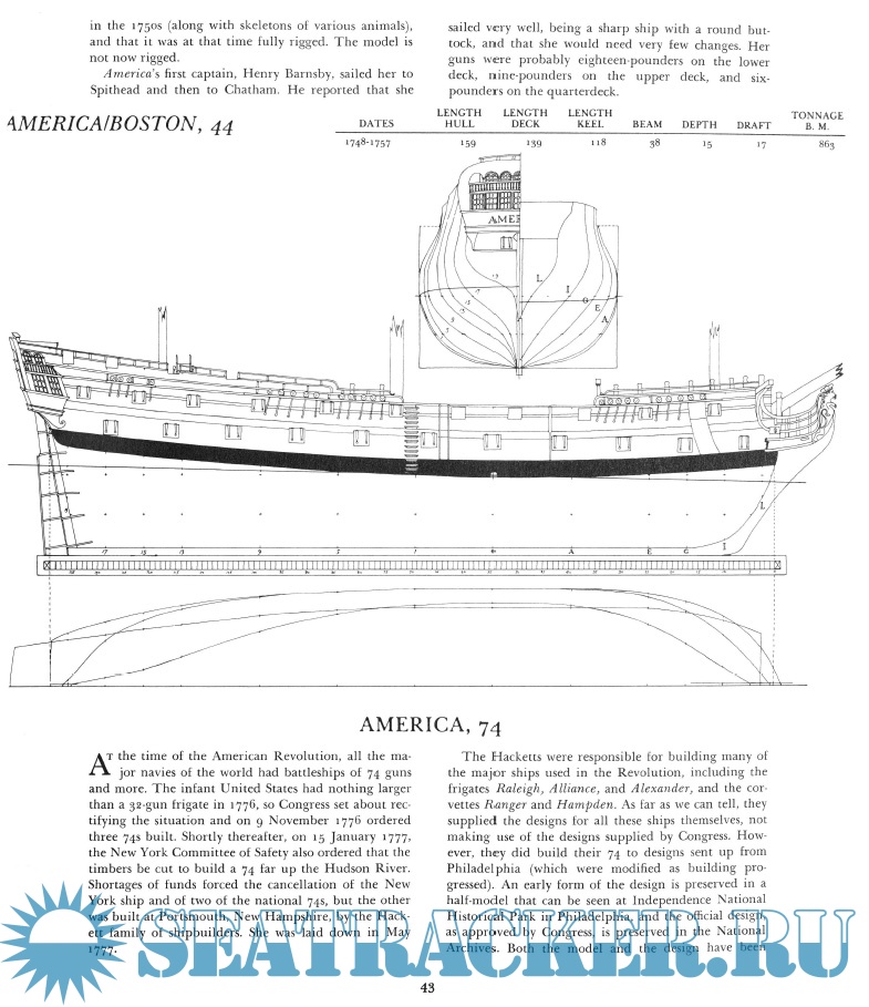 The rest of the book is devoted to details of over 200 ships of all sizes (in alphabetical order), giving an account of the history and significance of each ship, as well as partial and complete lines plans of each hull, either redrawn from original plans found in archives around the world or reconstructed from surviving shreds of information. Nearly all the known surviving eye-witness portraits of the original ships are reproduced—some of them published for the first time in two centuries—and the text includes many fascinating facts and conclusions previously known only to a few experts. Among the more remarkable ships are the Havana-built Santisima Trinidad (by far the largest ship in the world in her day); a 1730 cargo-schooner recently dredged from the bottom of a South Carolina river; Benjamin Franklin's design for swivel-sailed yachts; the various ships commanded by John Paul Jones; early steamboats and a submarine; and a 1730 Chesapeake Bay ship discovered by archaeologists while the foundation was being dug for a Manhattan skyscraper in 1982.
