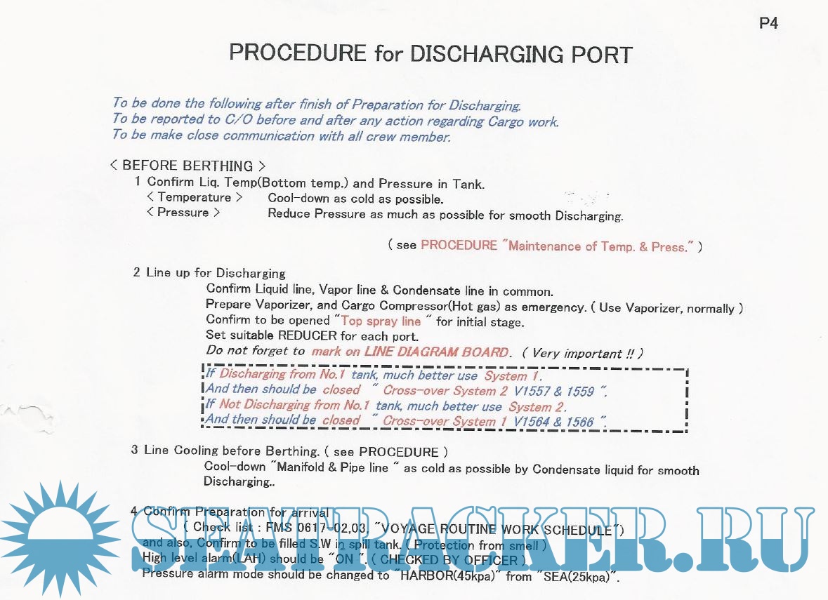 Chief Officer LPG Gas Guidelines and Procedures