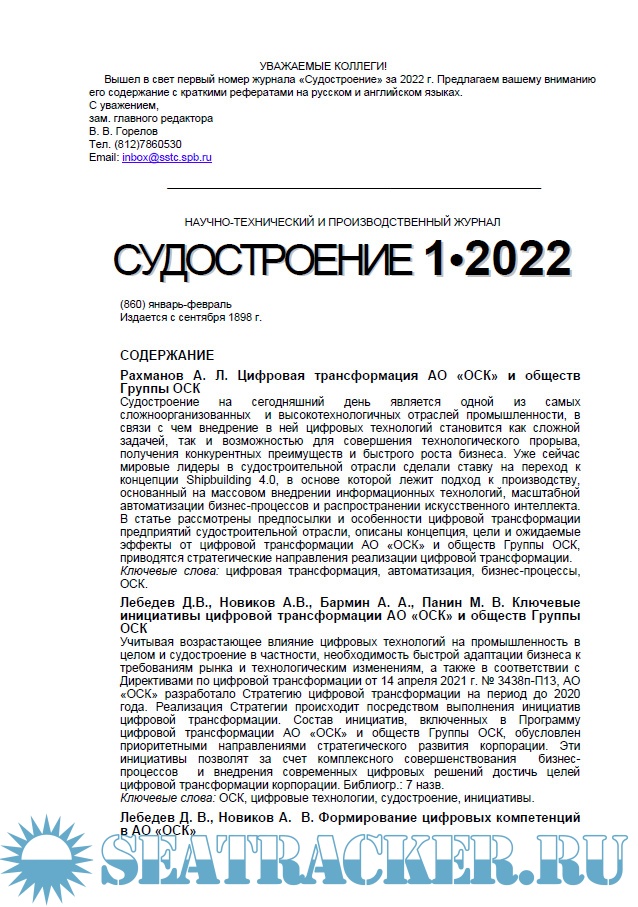 Журнал «Судостроение» март-апрель - Горелов В.В. (зам. главного редактора) [2022, PDF]
