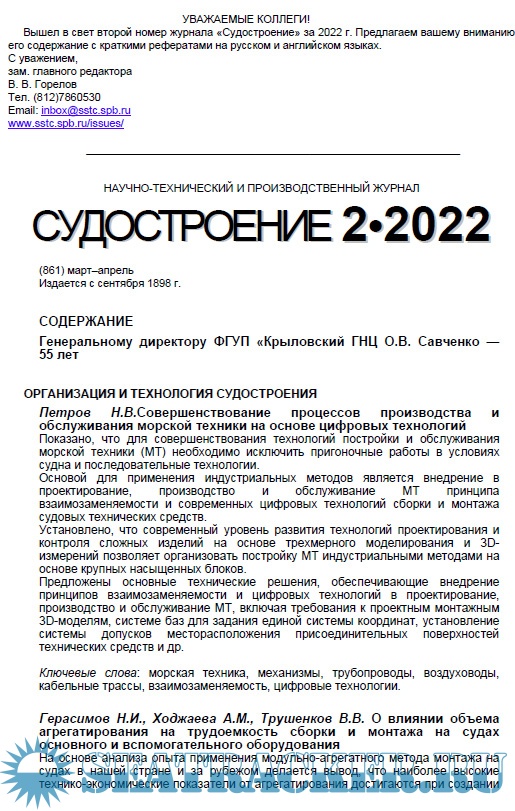 Год выпуска: 2022 Язык: русский Автор: Горелов В.В. (зам. главного редактора) Жанр: Периодическое издание (журнал) Издательство: АО «ЦТСС» Издание: 2002 №2 ISBN: 0039-4580 Формат: PDF Качество: Изначально компьютерное (eBook) Количество страниц: 86 Описание: В журнале публикуются статьи ученых и специалистов на темы, связанные с проектированием, постройкой, ремонтом, модернизацией и утилизацией военных кораблей, гражданских судов. Регулярно выходят в свет работы, посвященные организации и технологии судостроительного производства, проектированию верфей и доков, новым судостроительным материалам. Большое внимание уделяется вопросам судовой энергетики и новым разработкам в области морской техники.