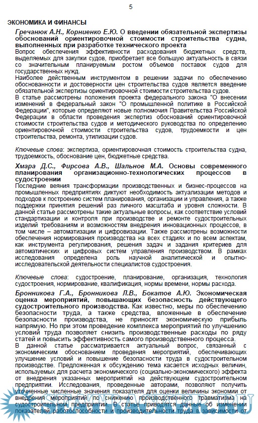 Описание: В журнале публикуются статьи ученых и специалистов на темы, связанные с проектированием, постройкой, ремонтом, модернизацией и утилизацией военных кораблей, гражданских судов. Регулярно выходят в свет работы, посвященные организации и технологии судостроительного производства, проектированию верфей и доков, новым судостроительным материалам. Большое внимание уделяется вопросам судовой энергетики и новым разработкам в области морской техники.