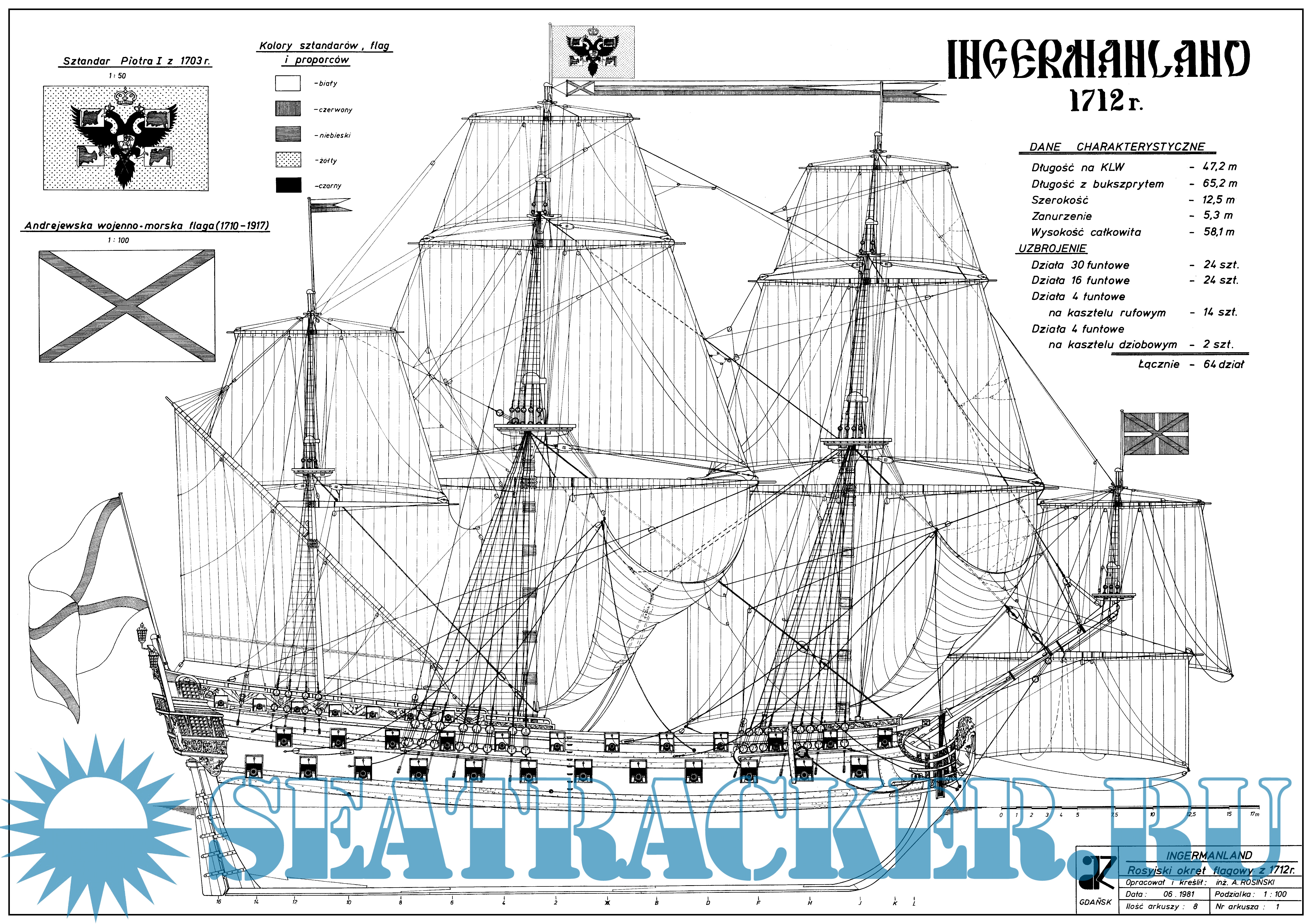 Линейный корабль ''Ингерманланд'' 1715 г. (Чертежи)