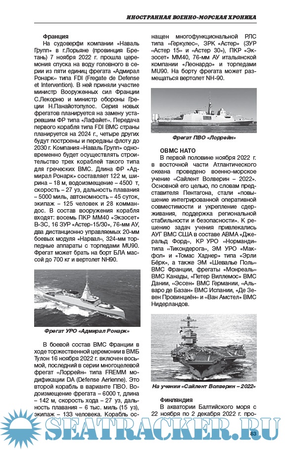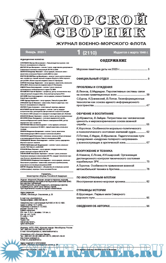 Год выпуска: 2023 Язык: русский Автор: Остапенко В.В. (Главный редактор) Жанр: Периодическое издание (журнал) Издание: 2023 -01 Формат: PDF Качество: Изначально компьютерное (eBook) Количество страниц: 108 Описание: «Морской сборник» – официальный ежемесячный журнал Военно-Морского Флота России. Он выходит в свет уже более 160 лет без перерыва на войны или революции. Российские моряки с гордостью говорят, что сегодня у флота России есть две настоящие реликвии – это крейсер «Аврора» и легендарный журнал «Морской сборник».