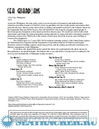 Year: 2010 Language: english Author: USAID Genre: Other Publisher: United States Agency for International Development Format: PDF Quality: Unknown Pages count: 64 Description: A photo-comic book consisting of six stories about homegrown champions of the sea and their advocacy.
