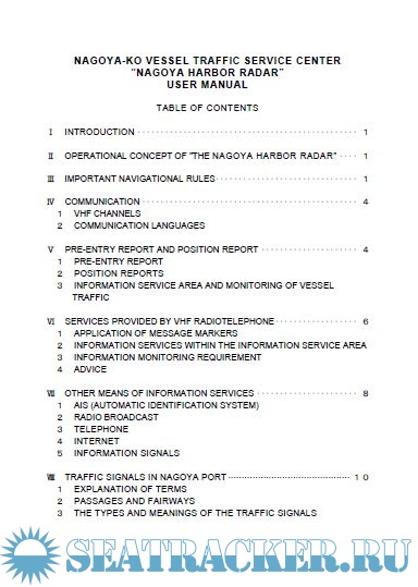 This User Manual aims at contributing to safe navigation of vessels by explaining about services provided by “NAGOYA HARBOR RADAR” and essential information while navigating in the Nagoya Port.